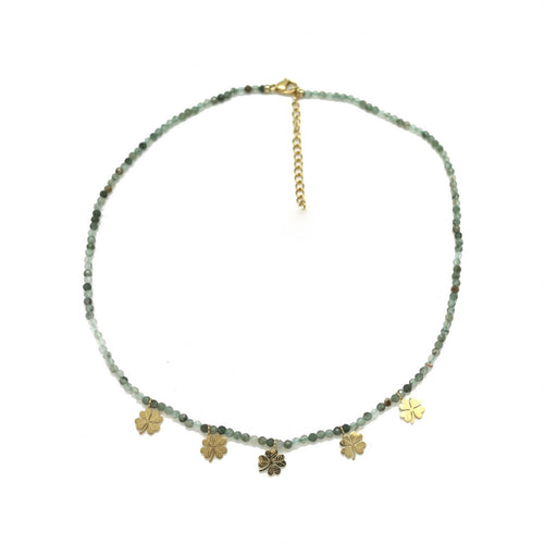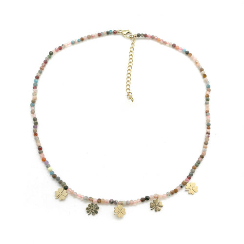 Five Shamrock Lucky Charms on Tourmaline Stone Necklace -French Flair Collection-2092