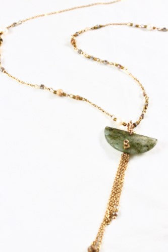 Long Delicate 24K Gold Plate Necklace with Labradorite Chunk -French Flair Collection- N2-968