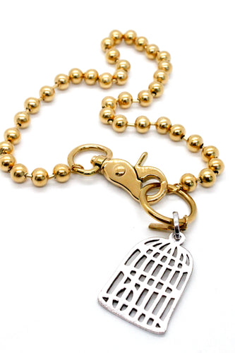 Bird Cage Necklace Single Gold Chain Claw Clasp