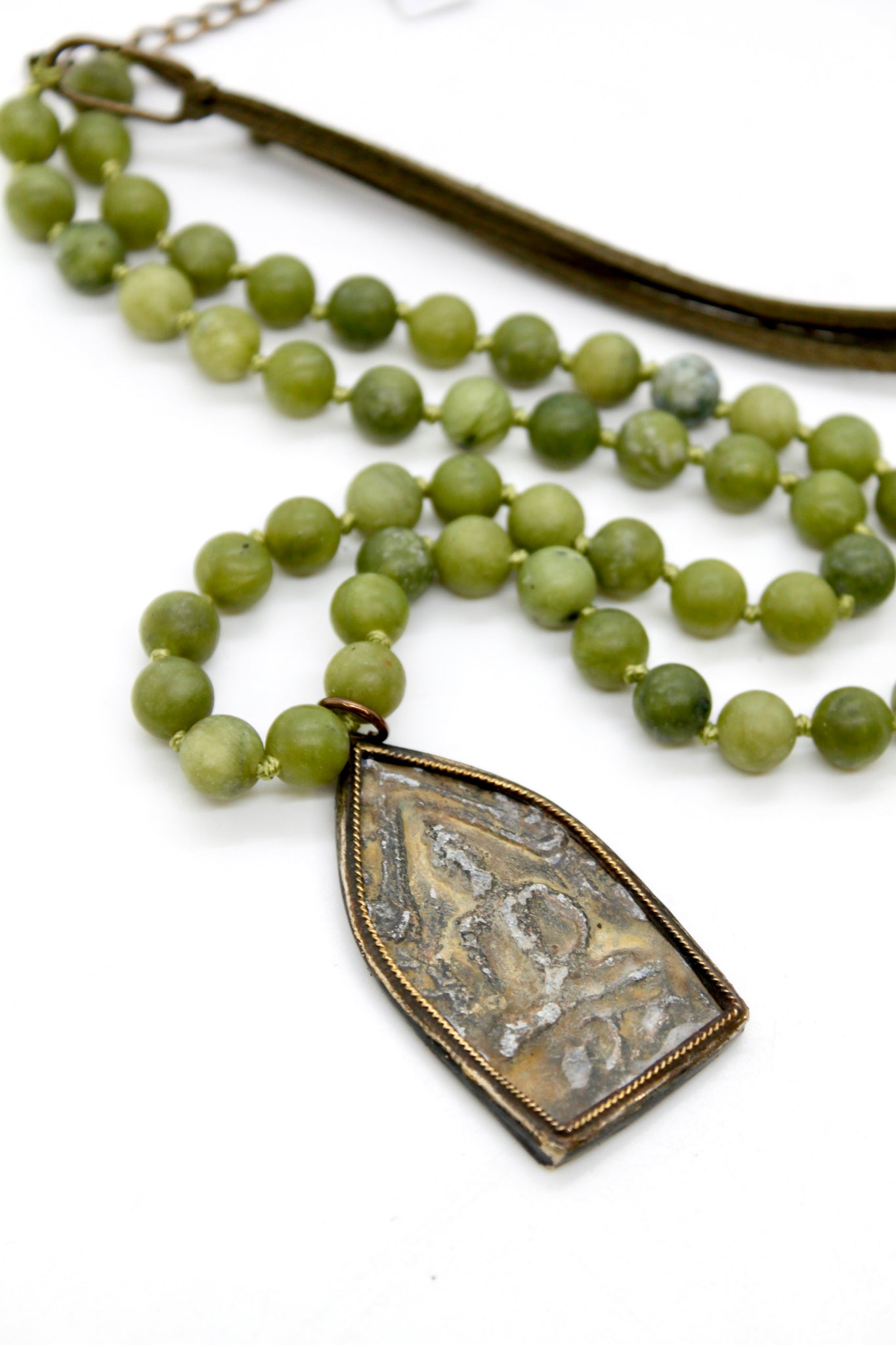 Buddha Necklace 106 - Green Agate