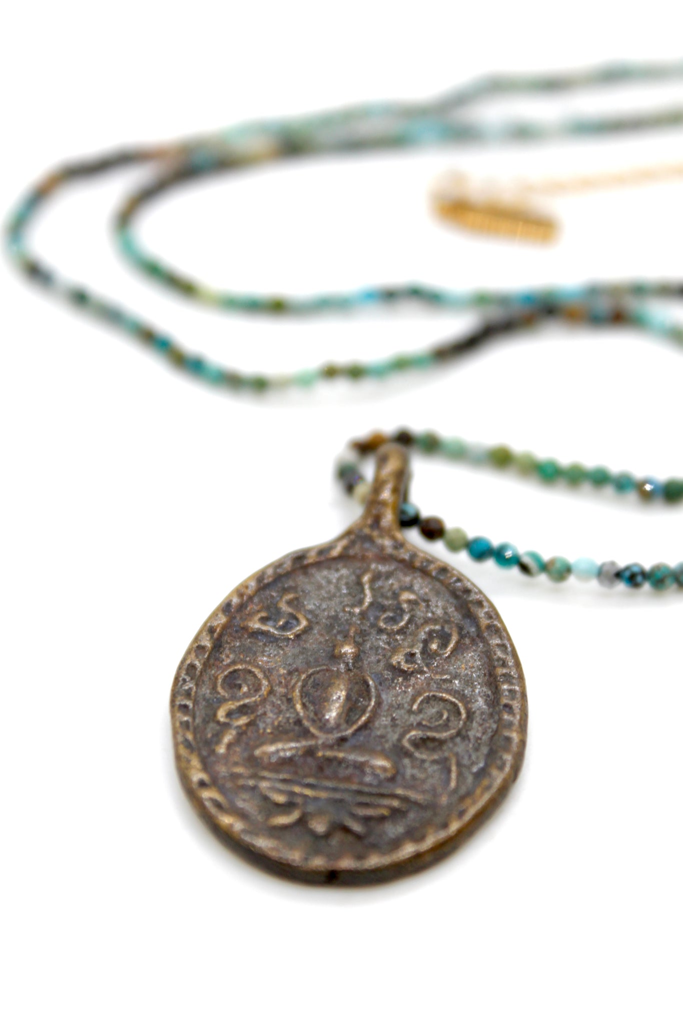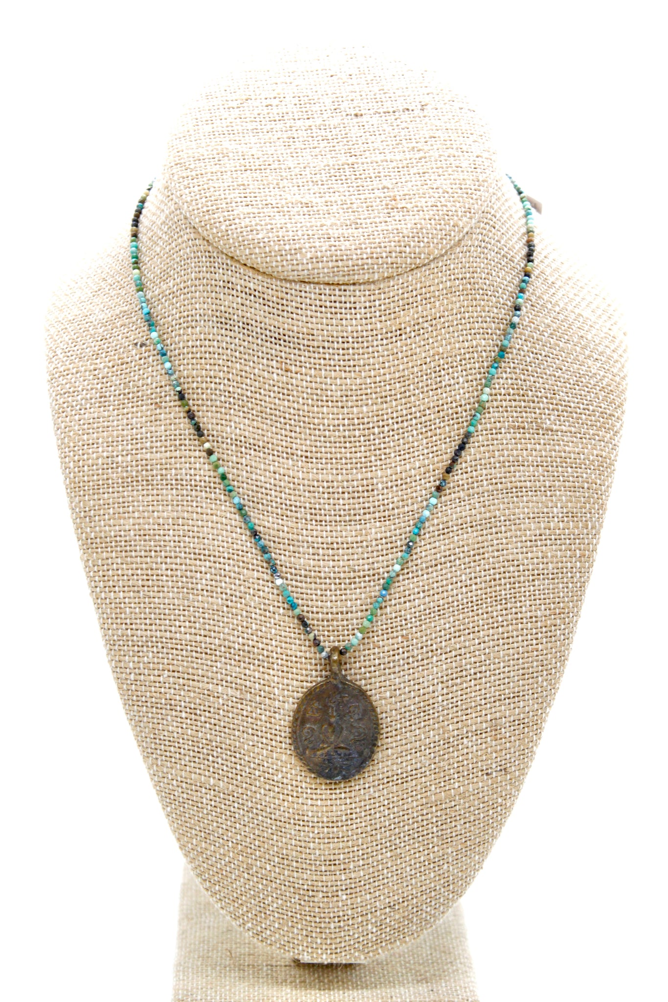 Beautiful Reversible Buddha Charm on semi precious stone necklace.