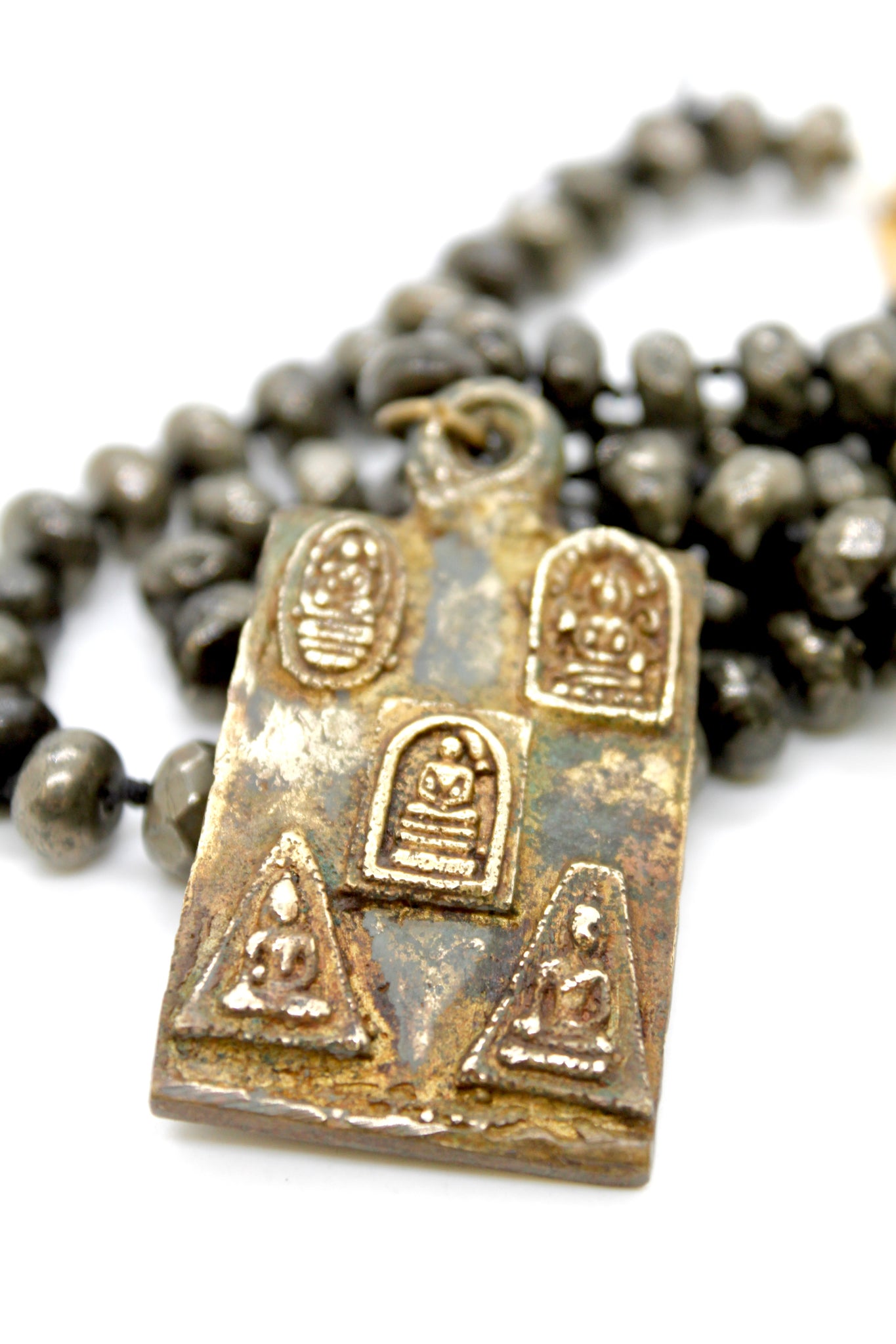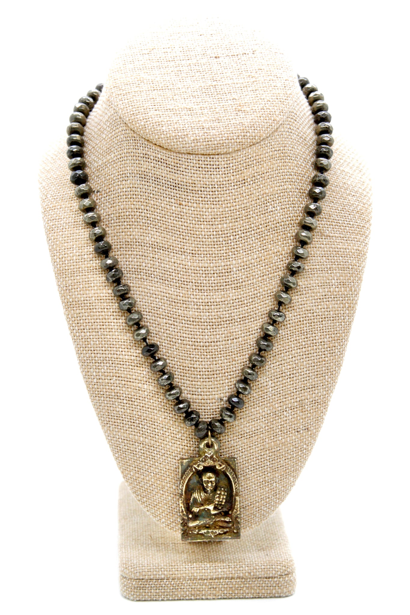 Beautiful Reversible Brass Buddha Charm on semi precious stone necklace.