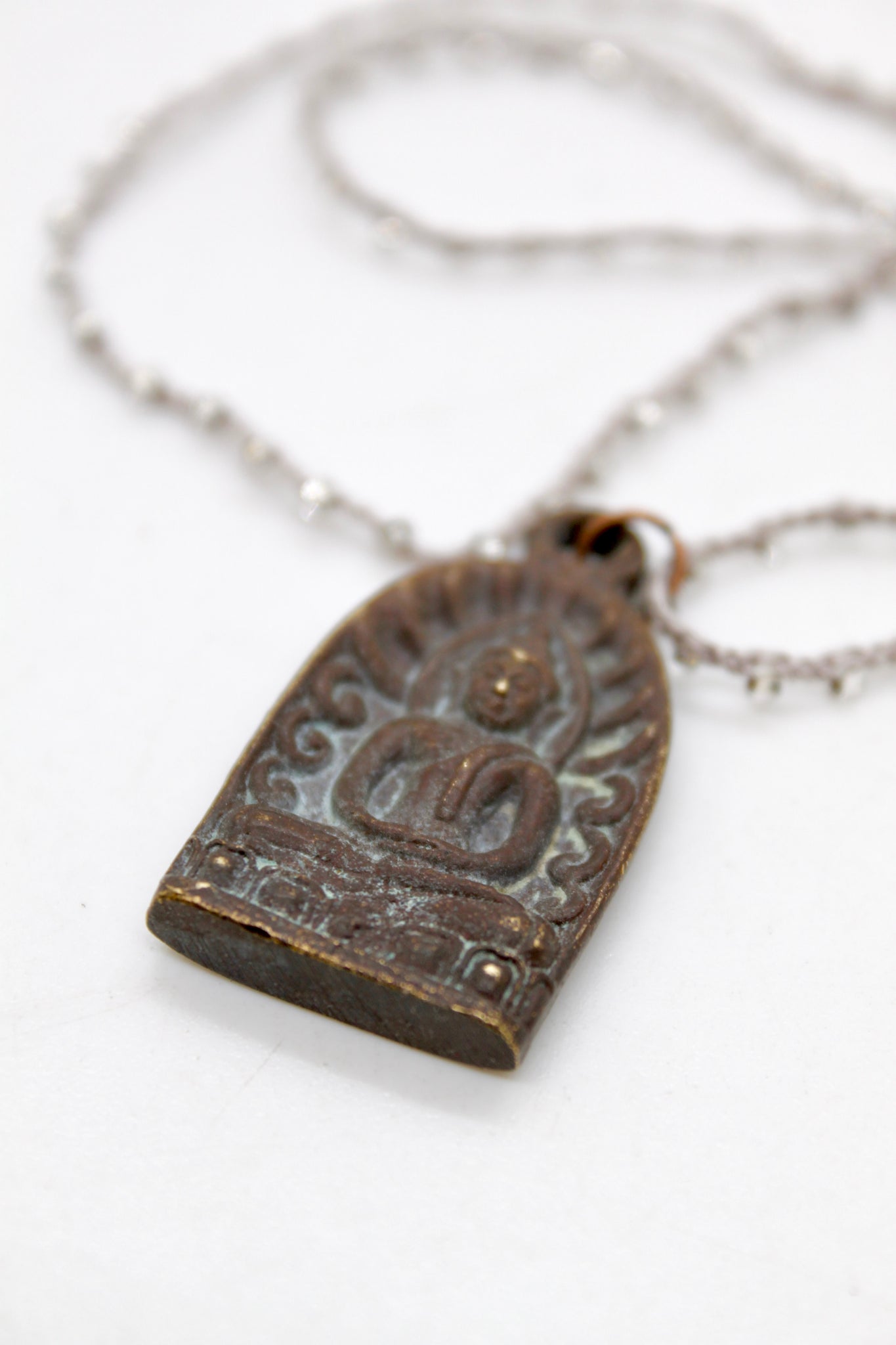 Beautiful Buddha Charm on crochet style necklace.