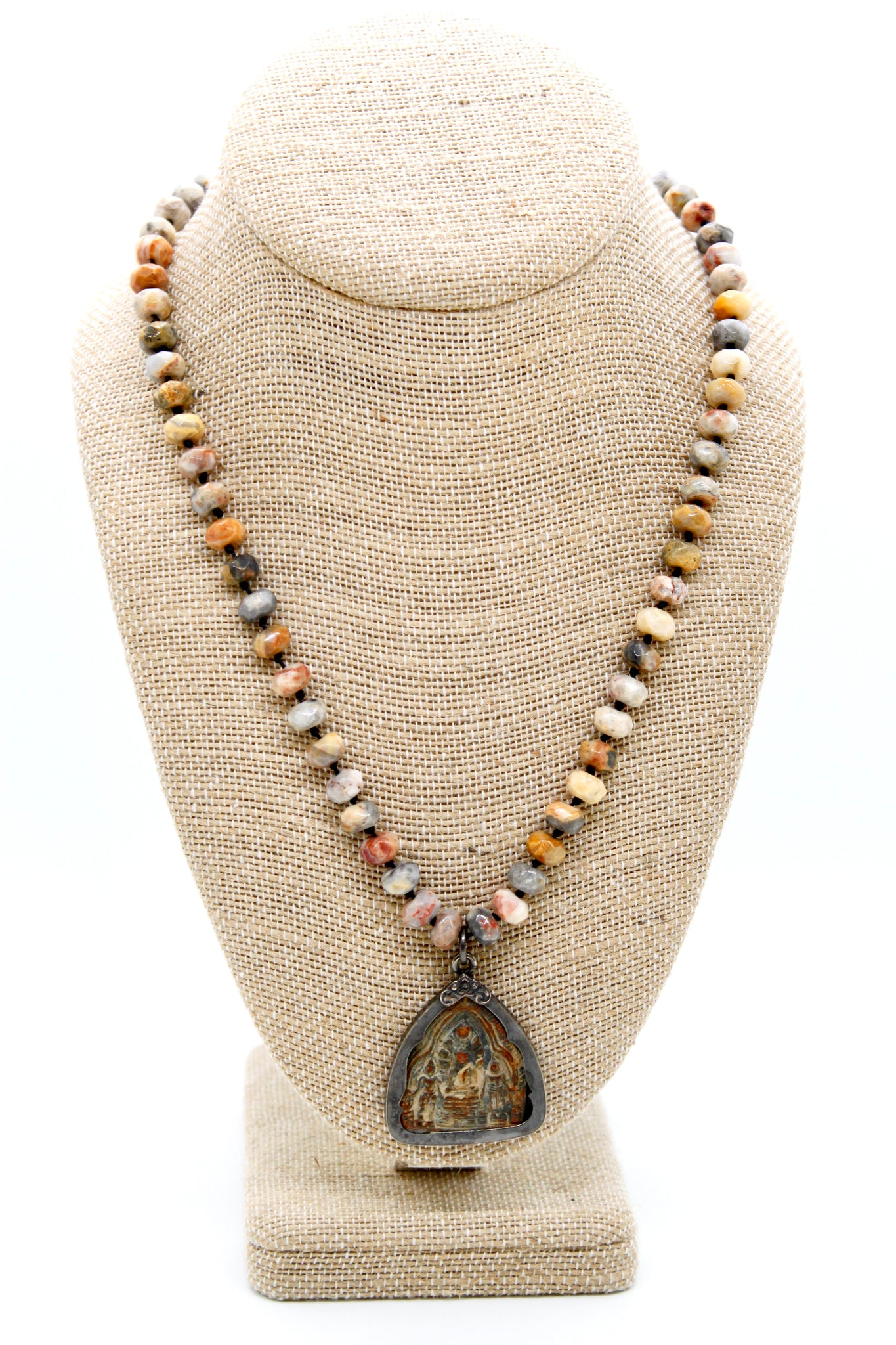 • Load image into Gallery viewer, Buddha Necklace 98 - Crazy Agate