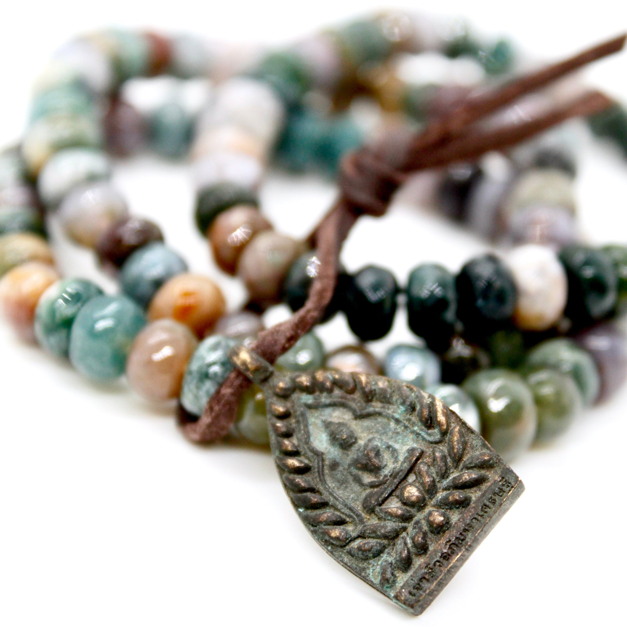 Faceted Indian Agate Reversible Vintage Buddha Charm Bracelet -Buddha Collection-