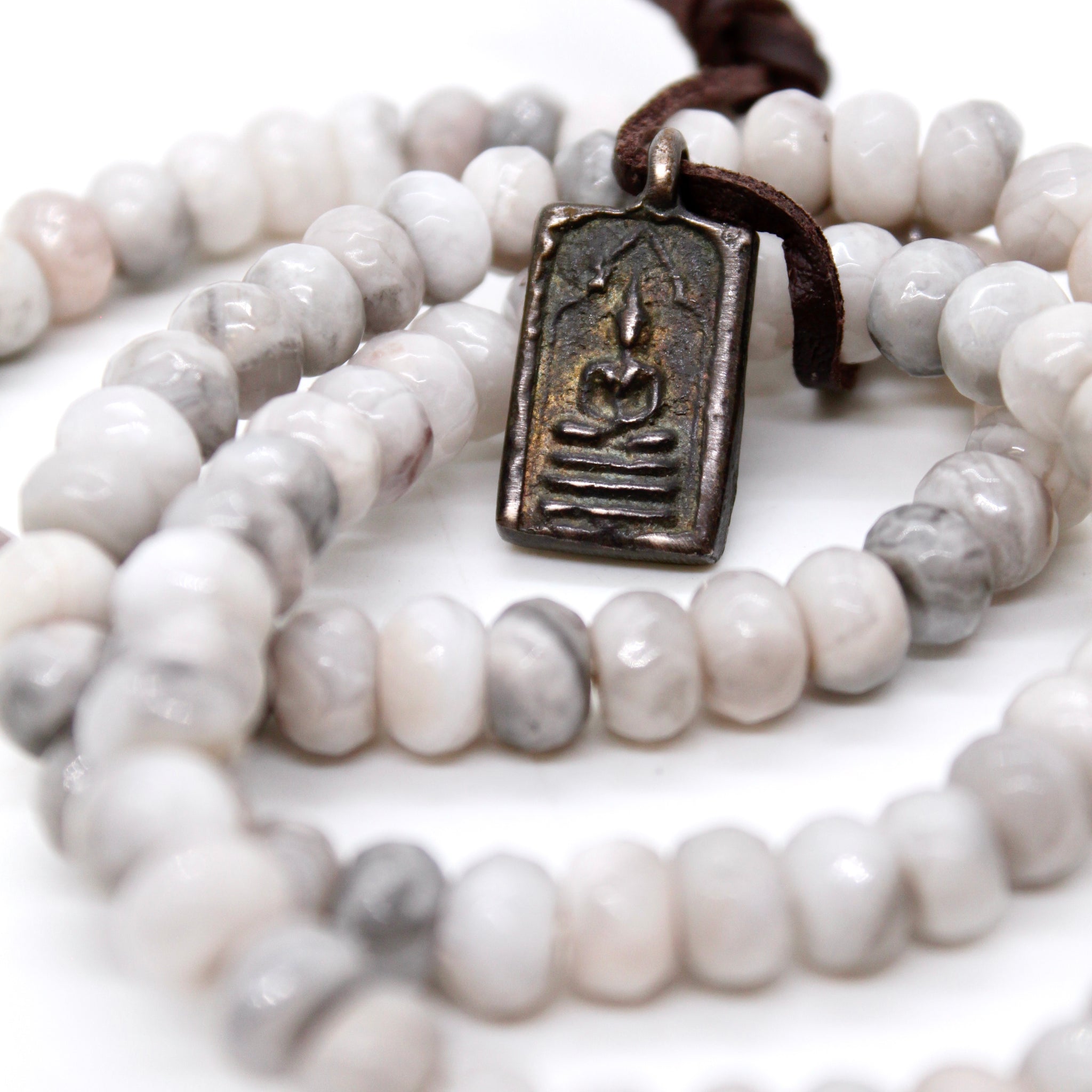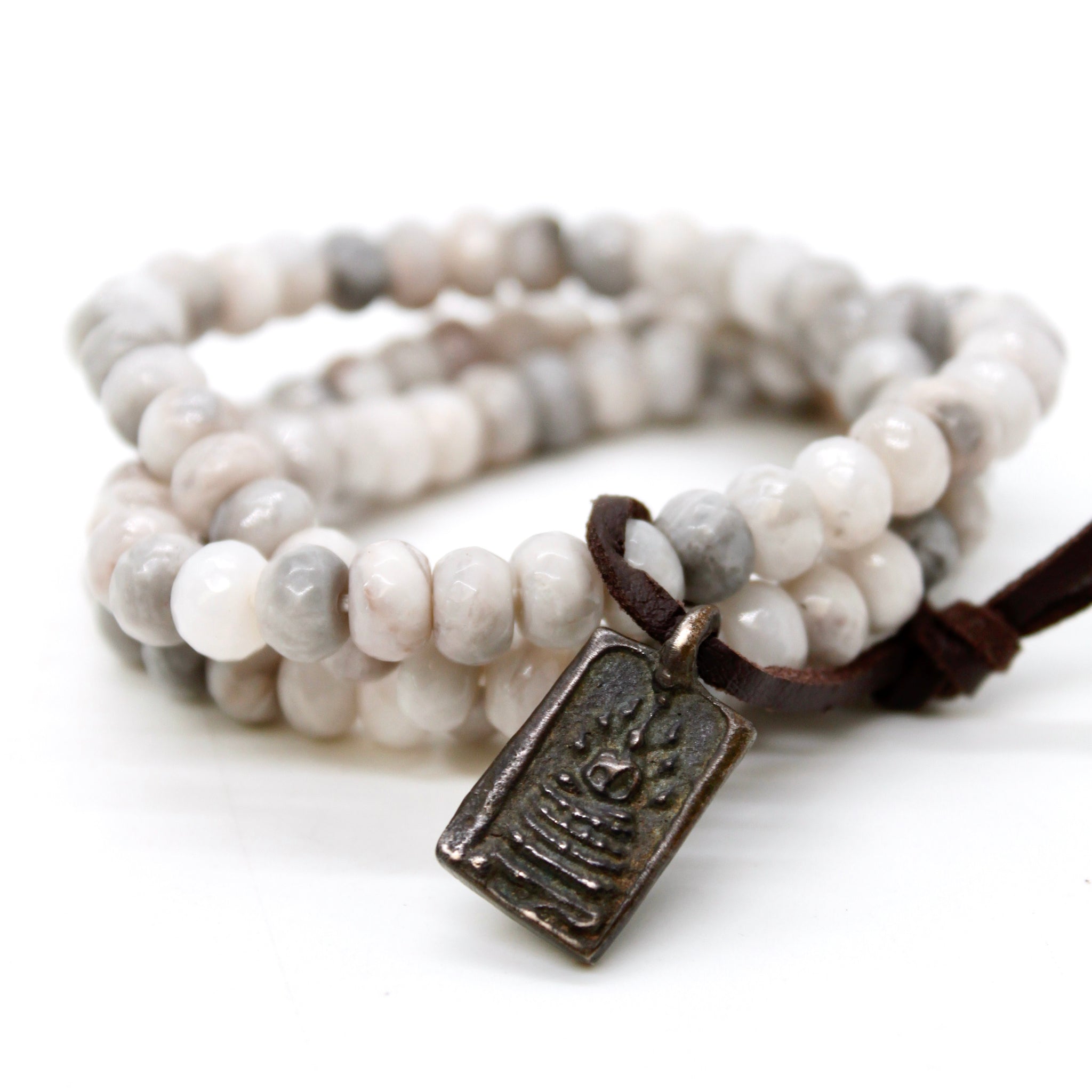 Faceted White Lace Jasper Buddha Charm Bracelet