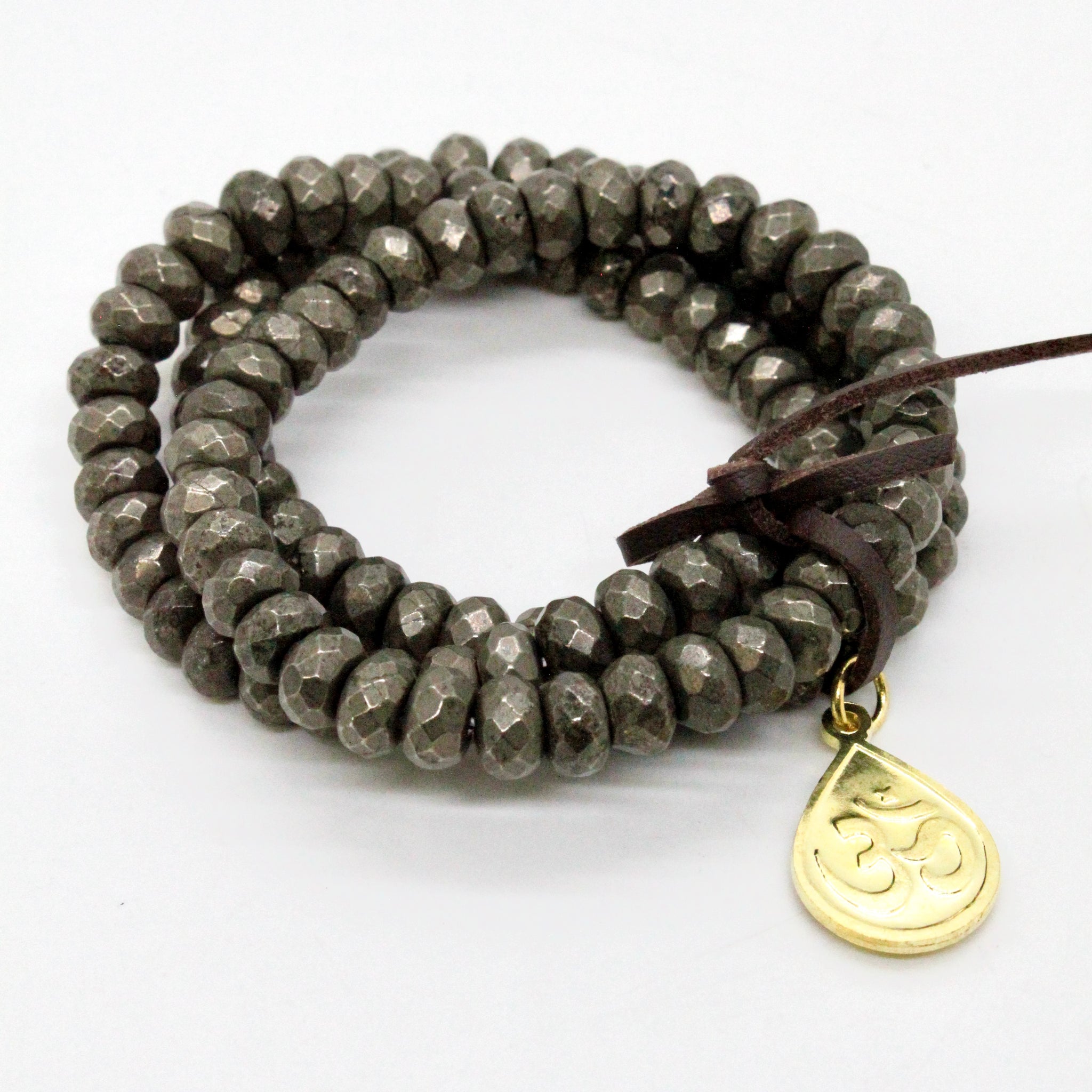 Stretch Pyrite Gold Buddha Charm Bracelet