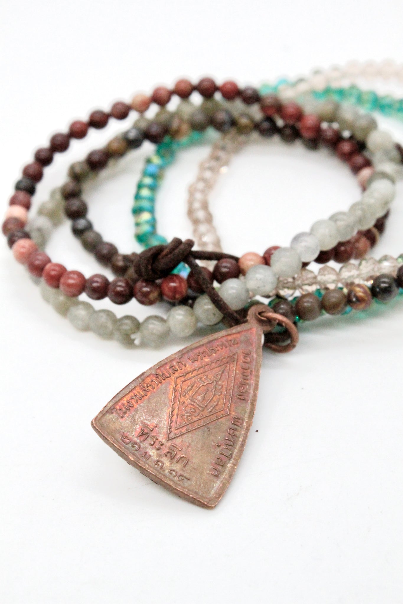 Semi Precious Stone Stretch Bracelet with Buddha Charm