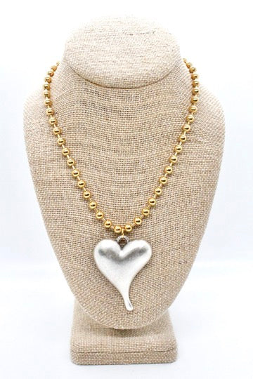 Simple Silver Pendant Convertible Gold Chain Necklace. (charm: 5.8cm x 4.1cm)