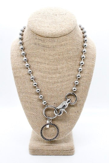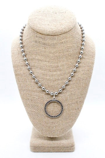 Antique Silver Circle Pendant Convertible Silver Chain Necklace. (charm: 3.8cm x 3.2cm)