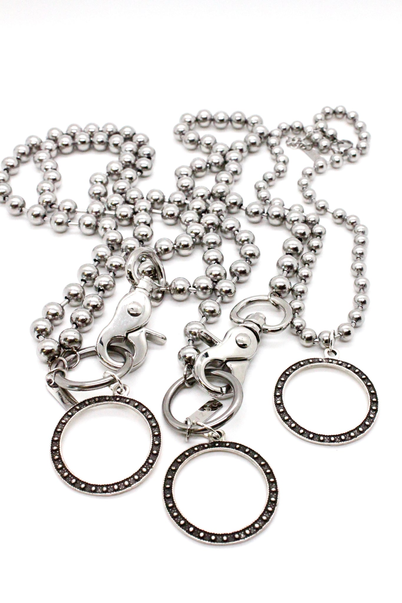 Many customers wear the necklace to hold glasses/badges through the hoop/clasp and stores who sell sunglasses display one piece as an "eyeglass holder".