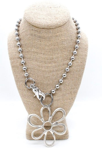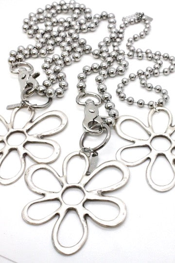 Flower Outline Pendant Convertible Silver Chain Necklace