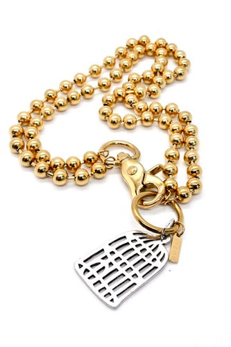 Convertible Short or Long Gold Ball Chain with Bird Cage -N2-885GD