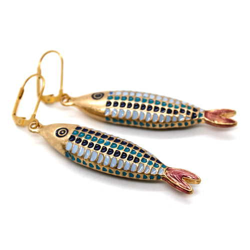 Gold Charm Dangle Earrings with Turquoise Stone -French Flair Collection- E4-009