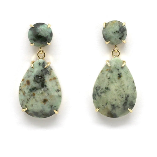 African Turquoise Mix and Gold Mini Charm Dangle Earrings - E4-326