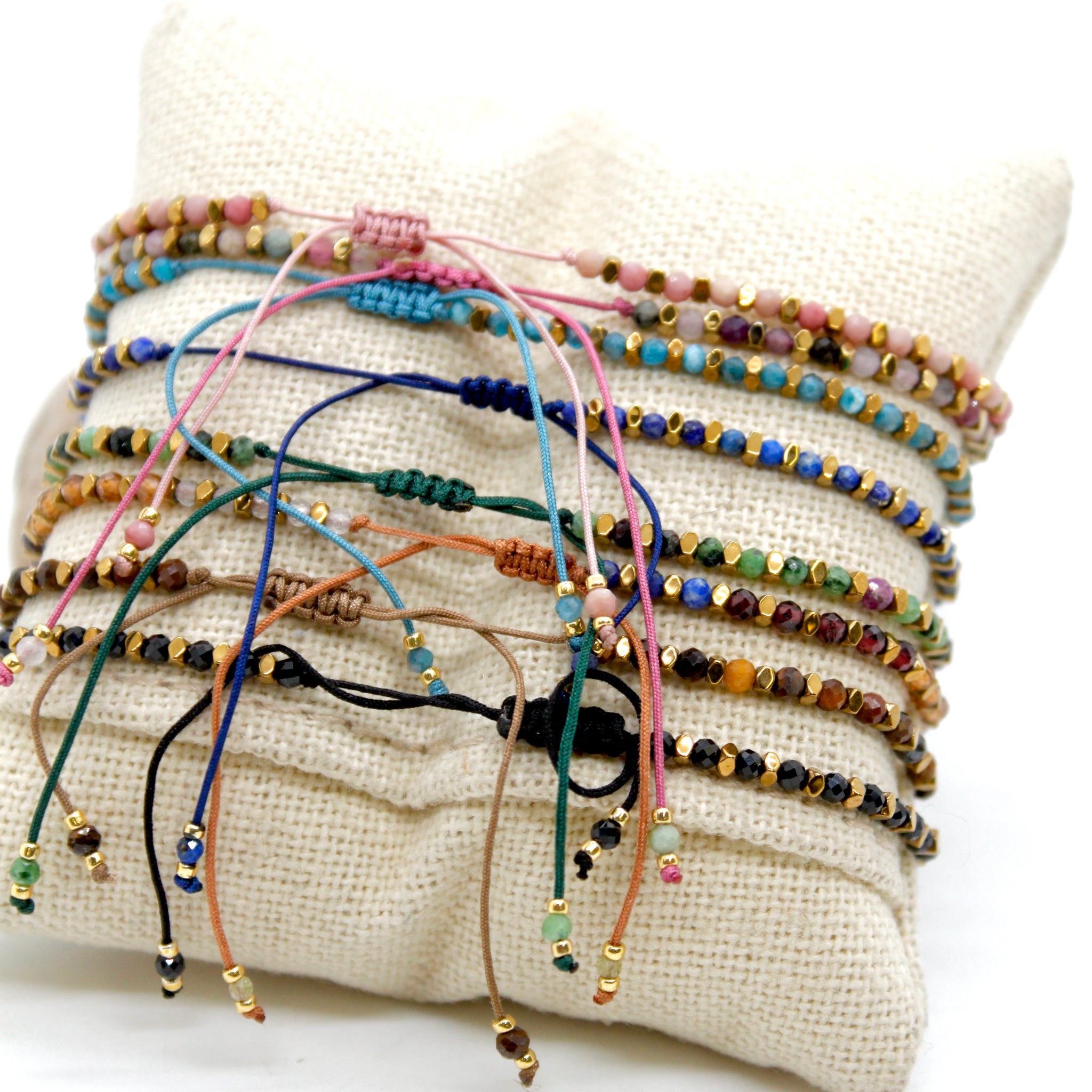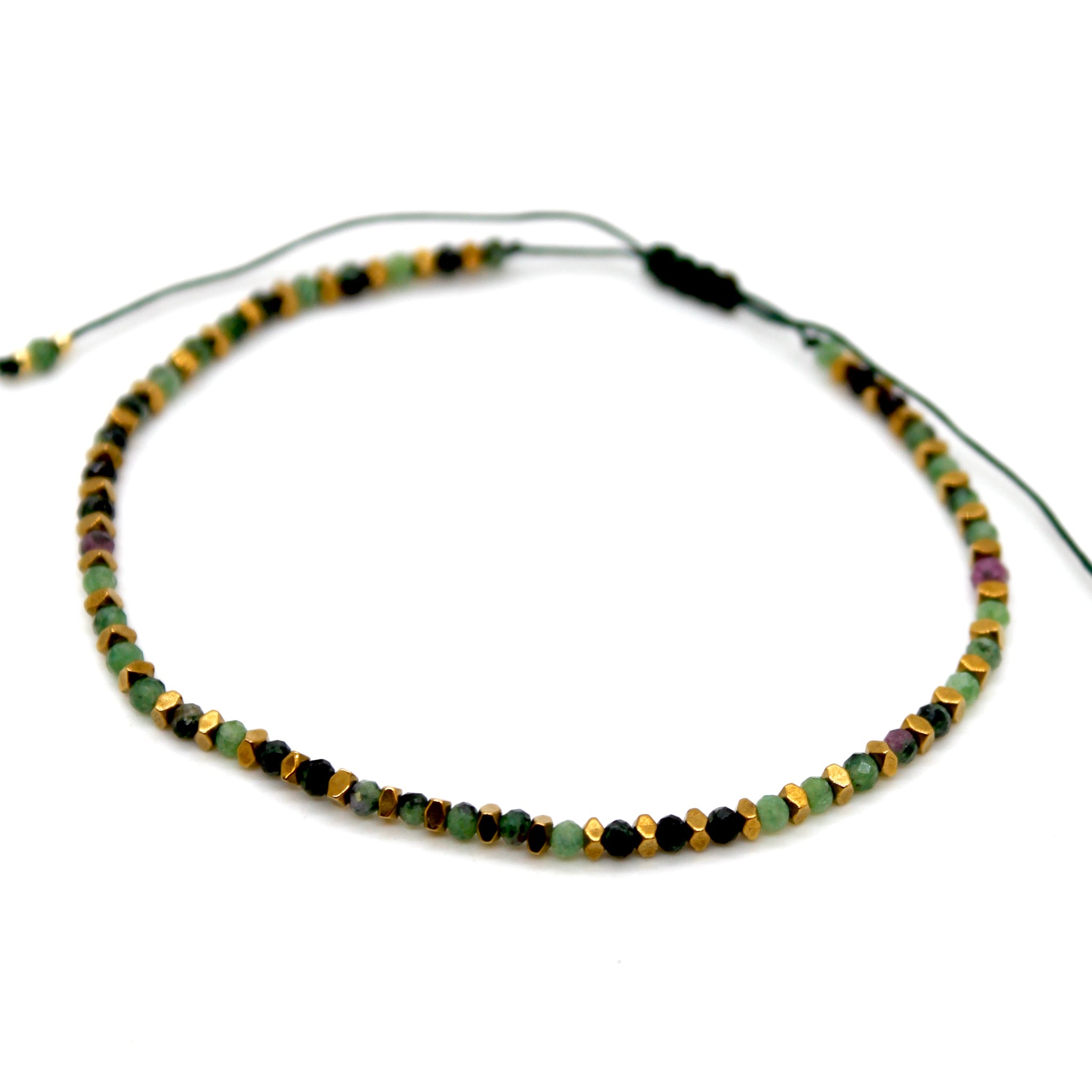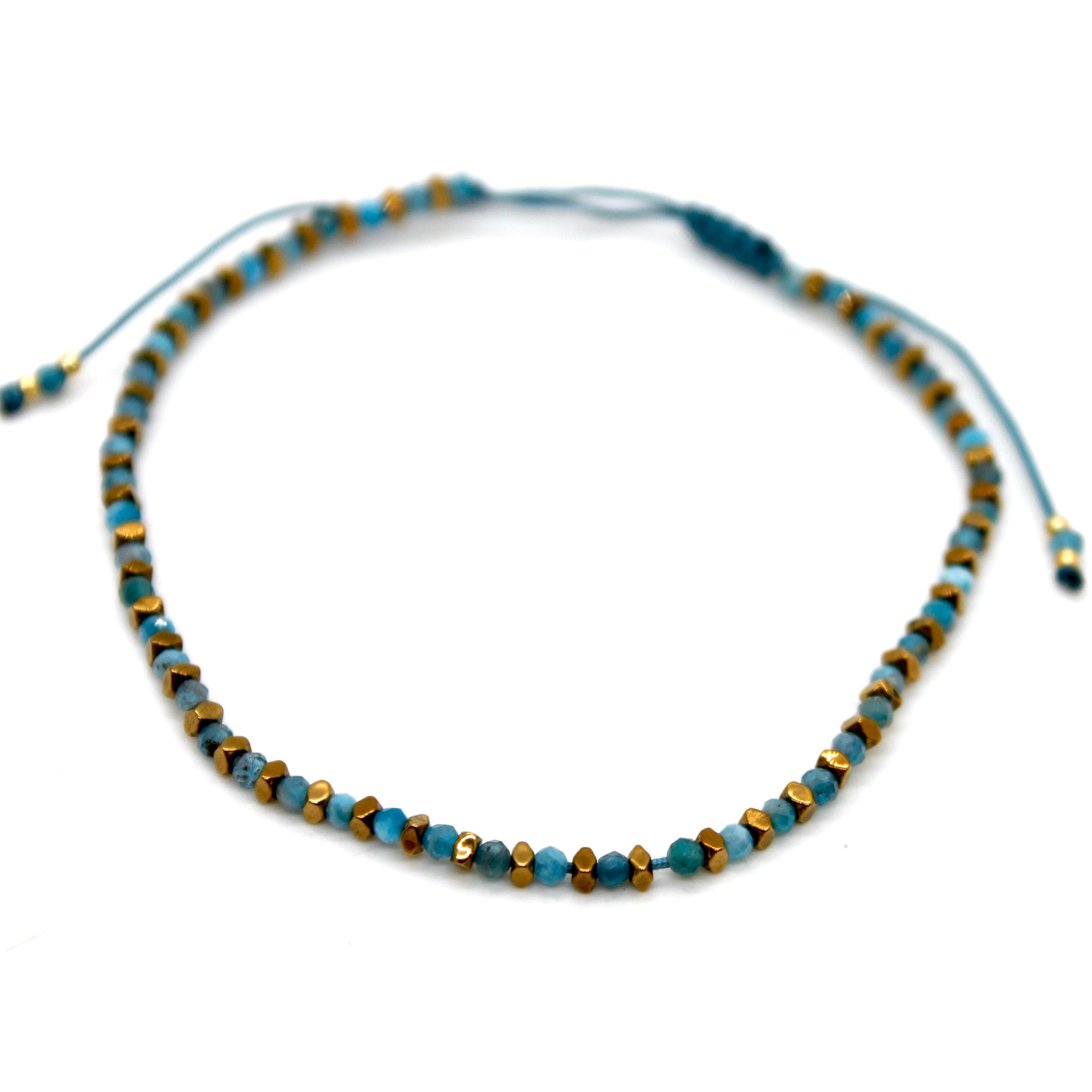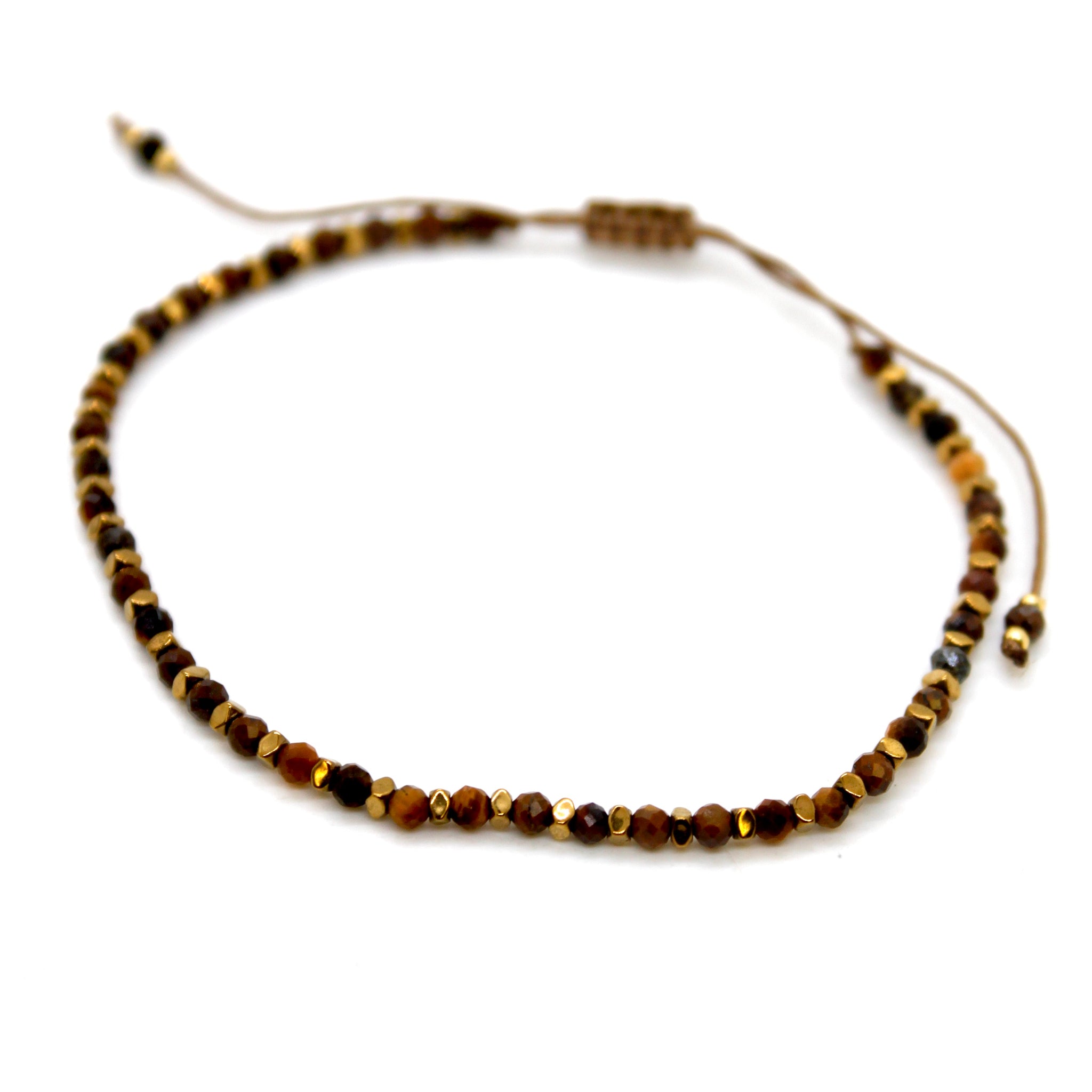 Tiny Faceted Stone and Gold Adjustable Bracelet