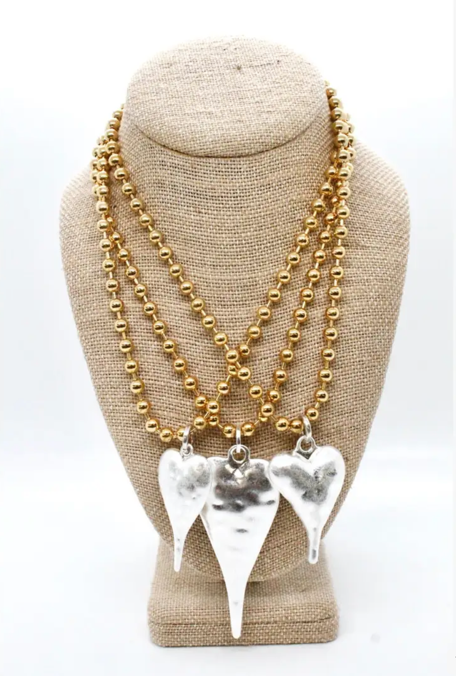 Single Gold Plate Ball Chain Necklace with Large Heart Charm