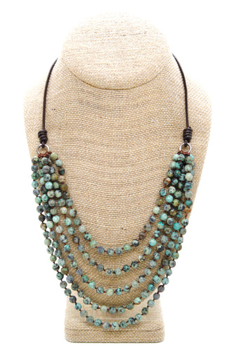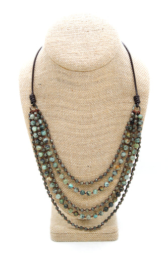 Quartz, Jasper, African Turquoise Mix Hand Knotted Long Necklace on Genuine Leather -Layers Collection- NLL-Dirt