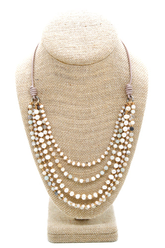 Semi Precious Stone Multi Strand Short Necklace - NLS-Surf