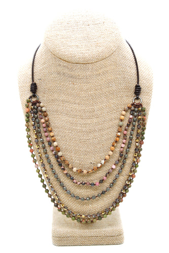 Semi Precious Stone Multi Strand Short Necklace - N4-020