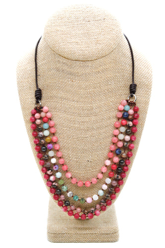 Semi Precious Stone Multi Strand Short Necklace - NLS-Haas