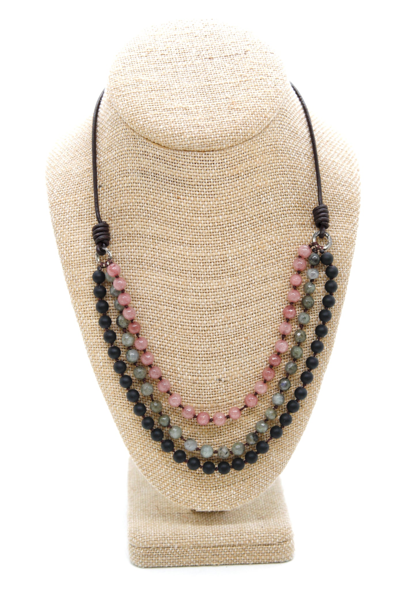 Multi Layer Short Necklace on Genuine Leather.