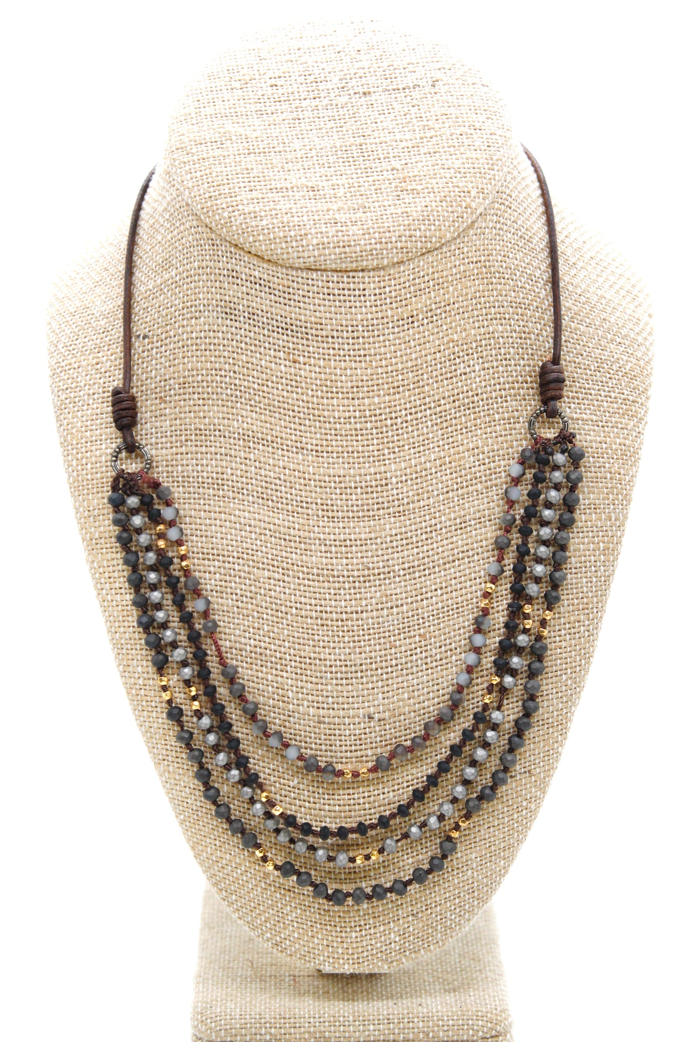 Created to compliment our best selling bracelets, this necklace is meant for those who love a shorter length and desire a matching necklace! Featuring beads that are hand knotted in between each bead for durability, a genuine leather cord, and a silver plated Lizou button clasp. Please note that this necklace is non-adjustable. Pair with the matching bracelet, BC-057, for a complete set!