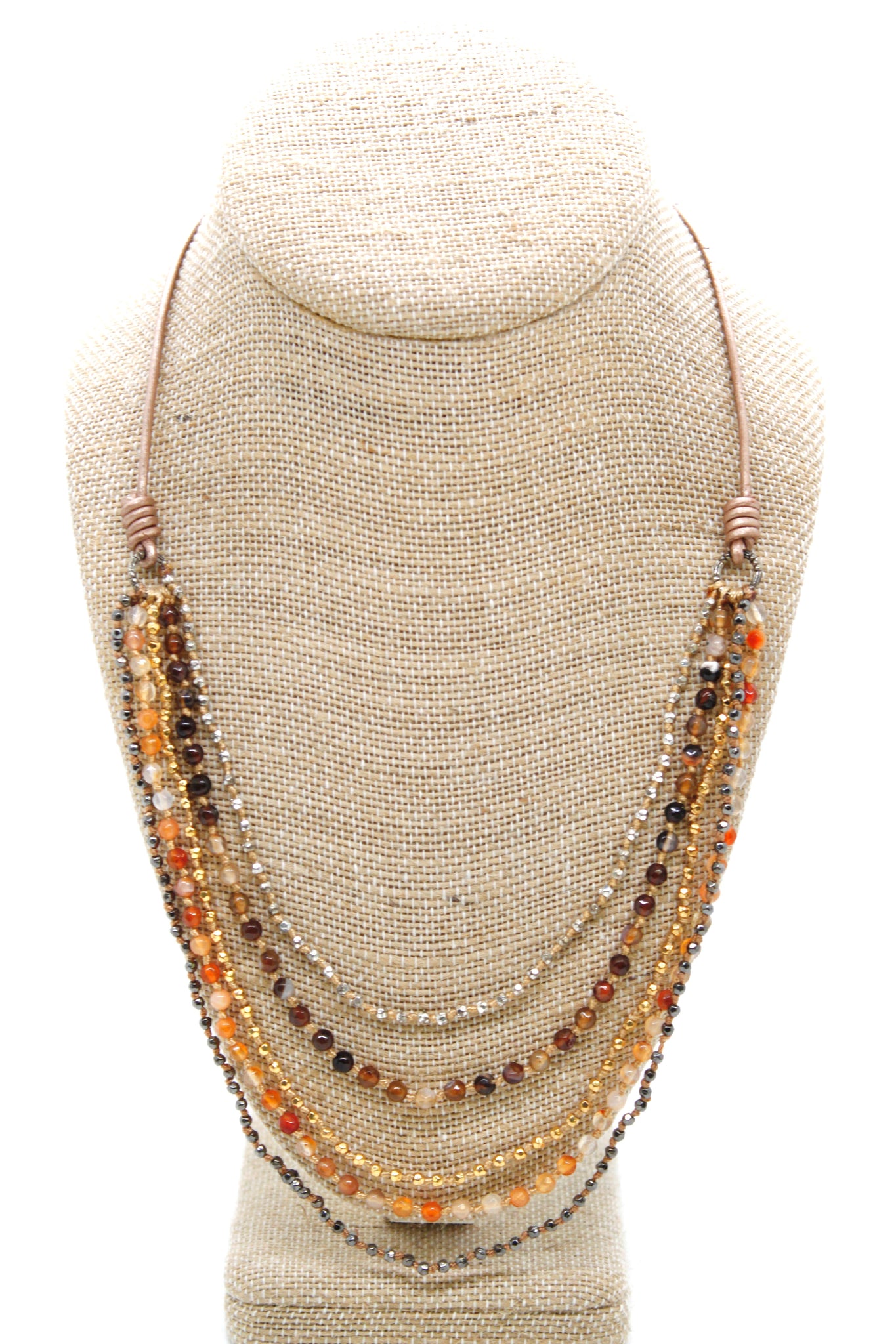 Semi Precious Stone Multi Strand Short Necklace - NLS-Autumn