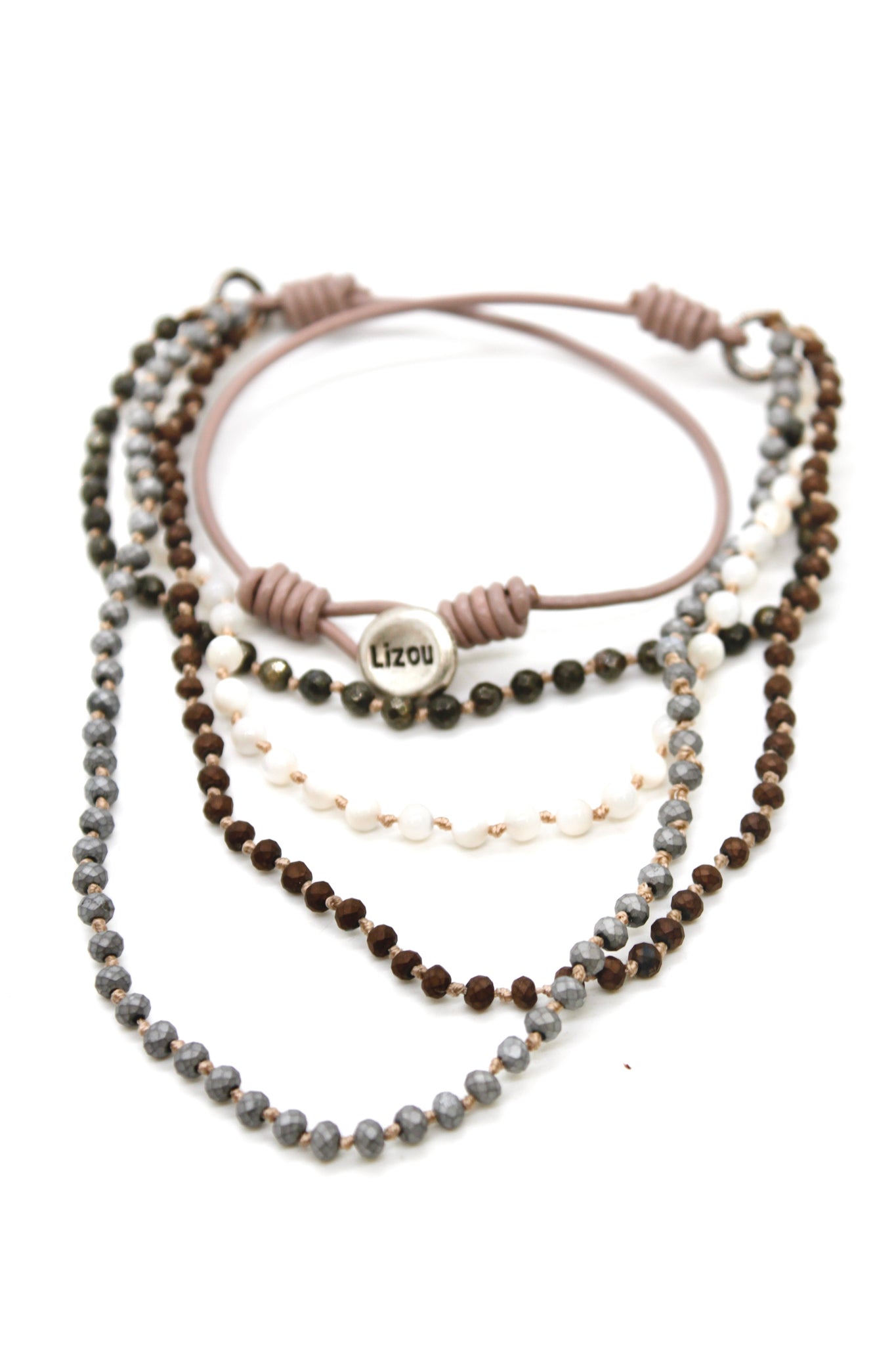 Created after our best selling wrap bracelets, this necklace is meant for those who love a shorter length and desire a matching necklace! Featuring beads that are hand knotted in between each bead for durability, a genuine leather cord, and a silver plated Lizou button clasp. Please note that this necklace is non-adjustable. Pair with the matching bracelets, Charlie and WR5-Charlie, for a complete set!