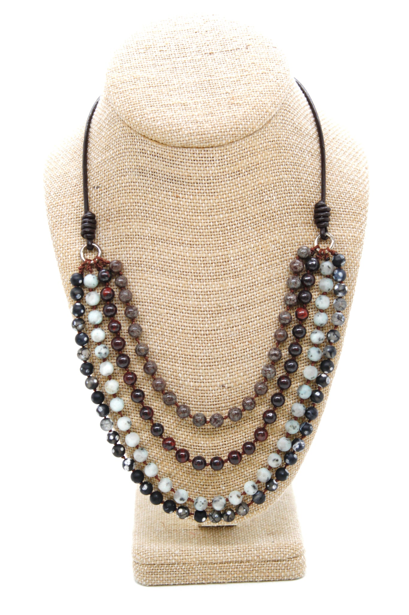 Semi Precious Stone Multi Strand Short Necklace - NLS-M36