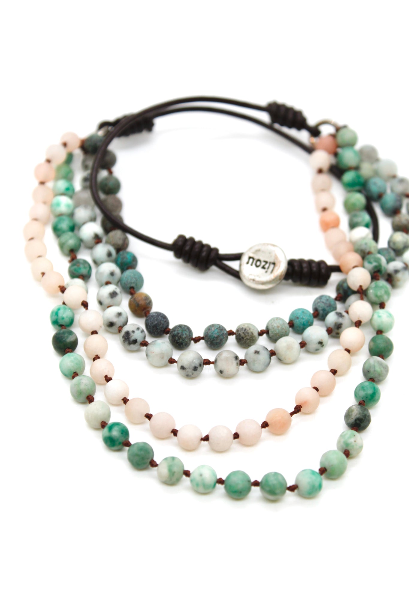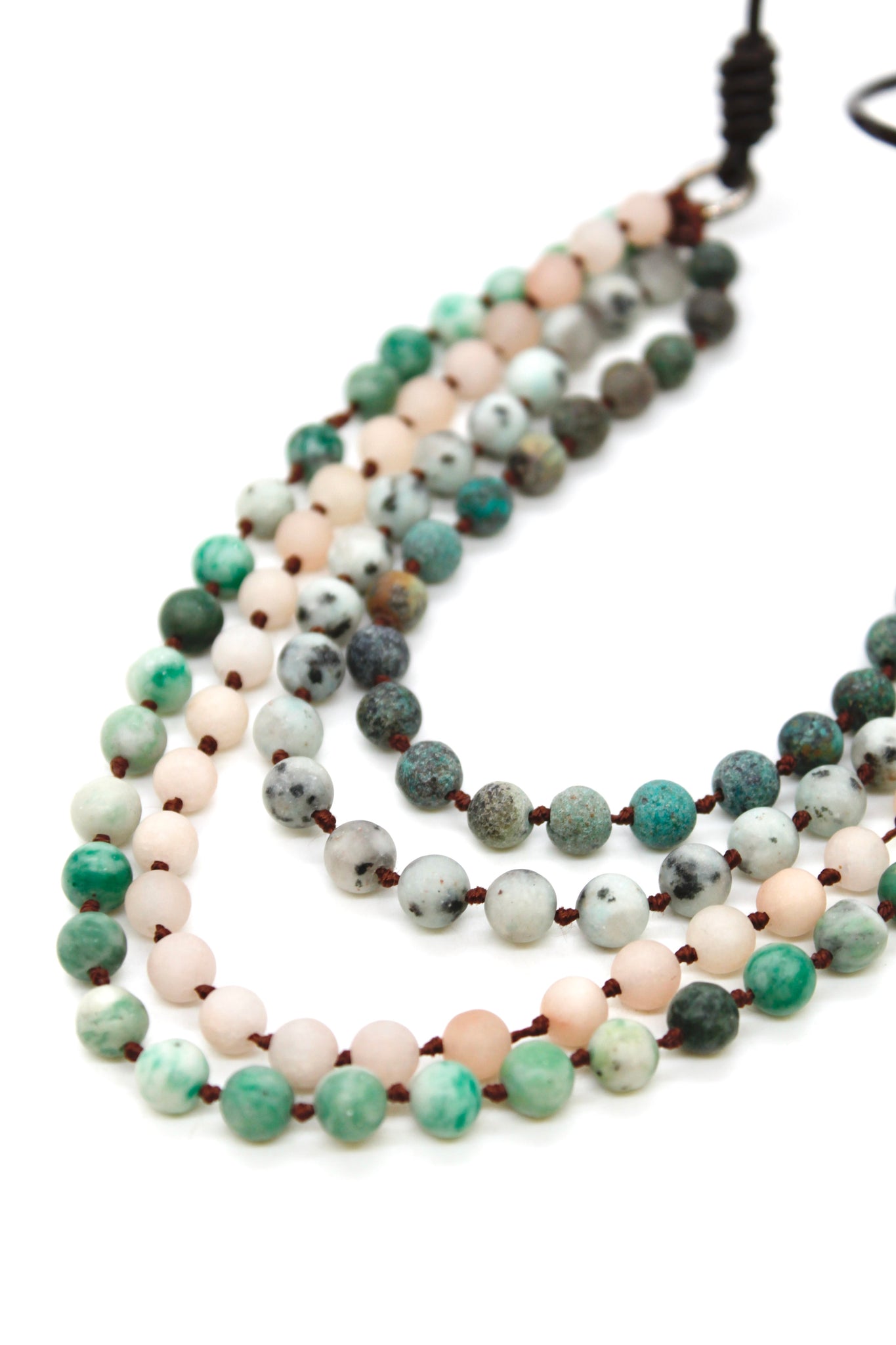 Created after our best selling BL-M bracelets, this necklace is meant for those who love a shorter length and desire a matching set! Featuring beads that are hand knotted in between each bead for durability, a genuine leather cord, and a silver plated Lizou button clasp.