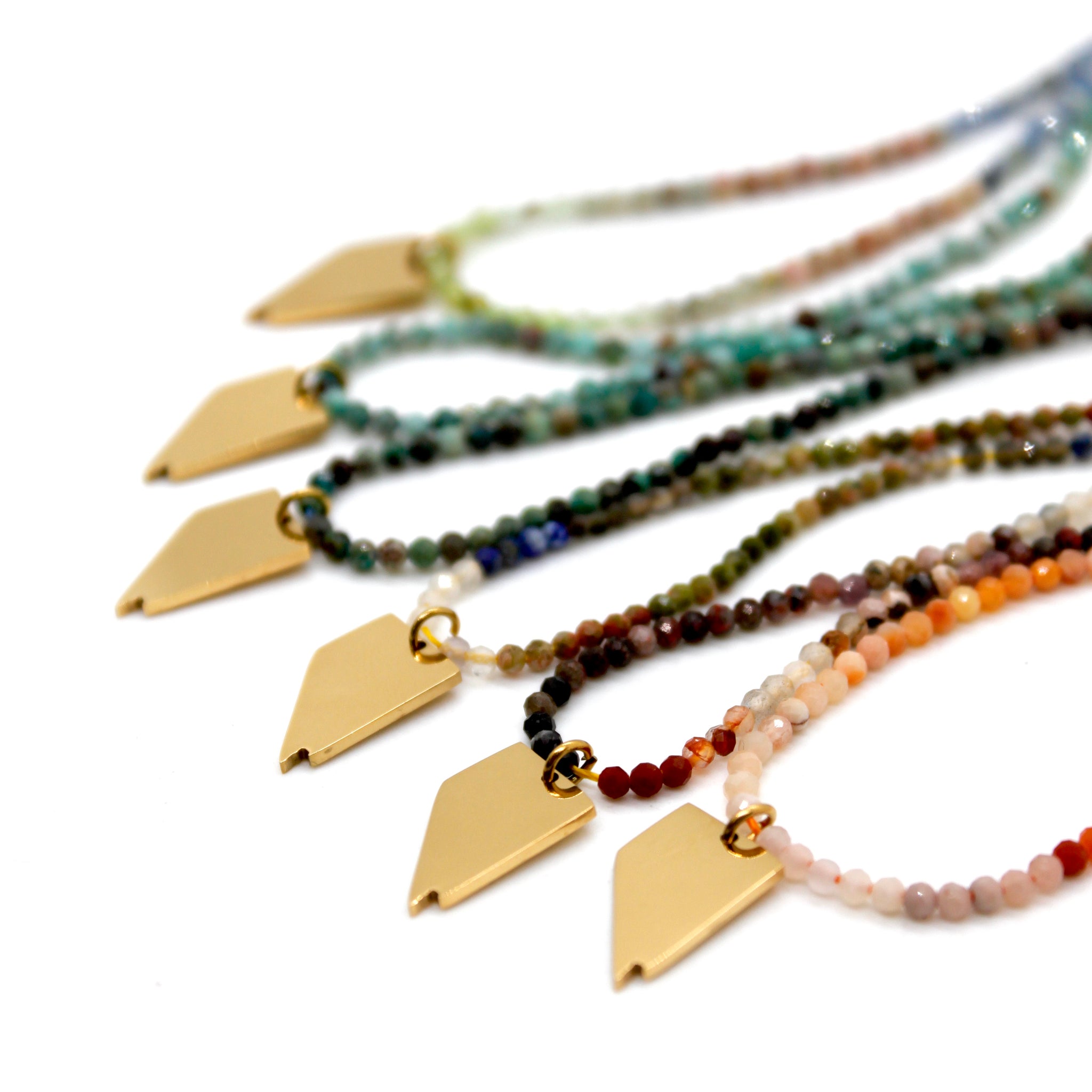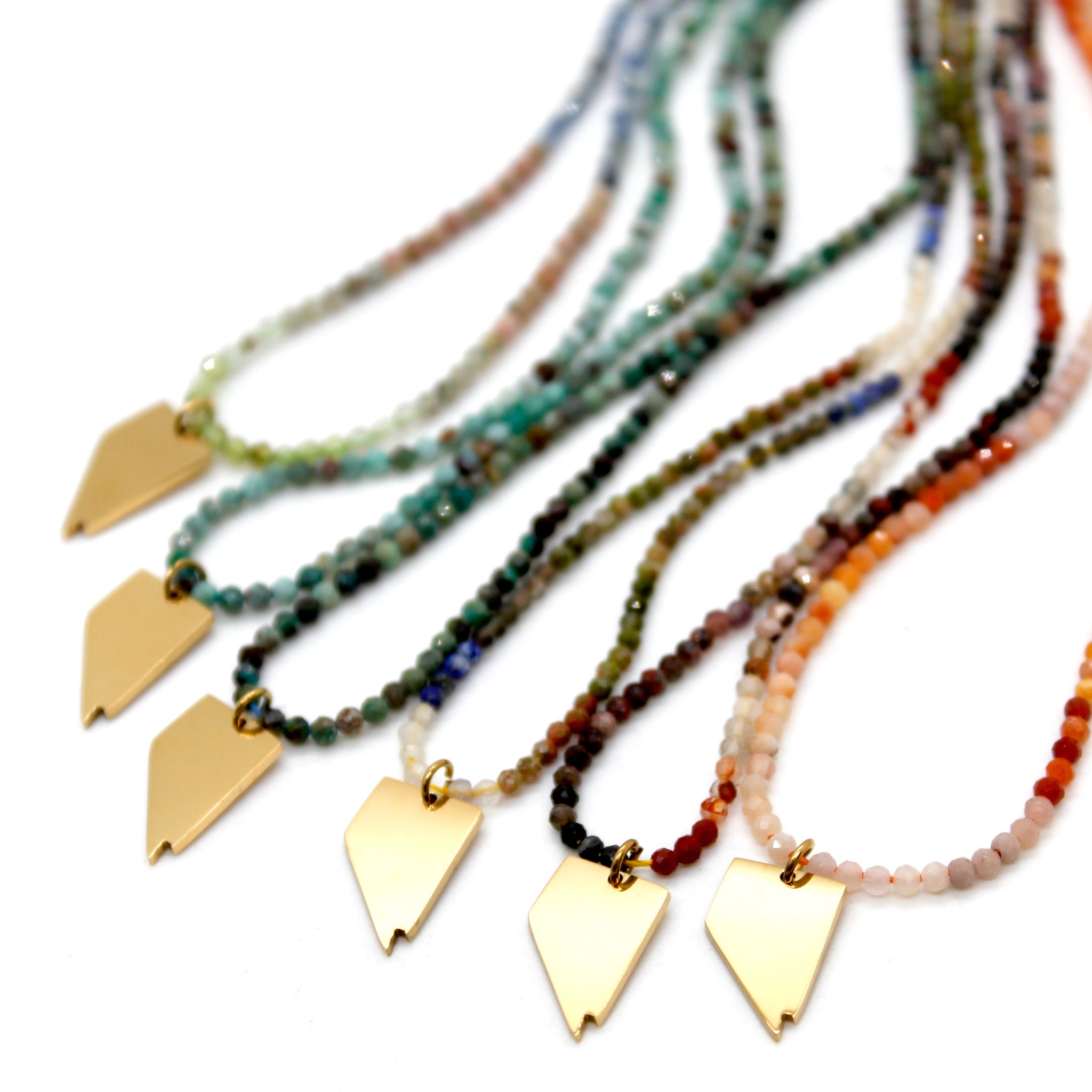 Gold Plated Nevada Charm on Short Faceted Stone Necklace.