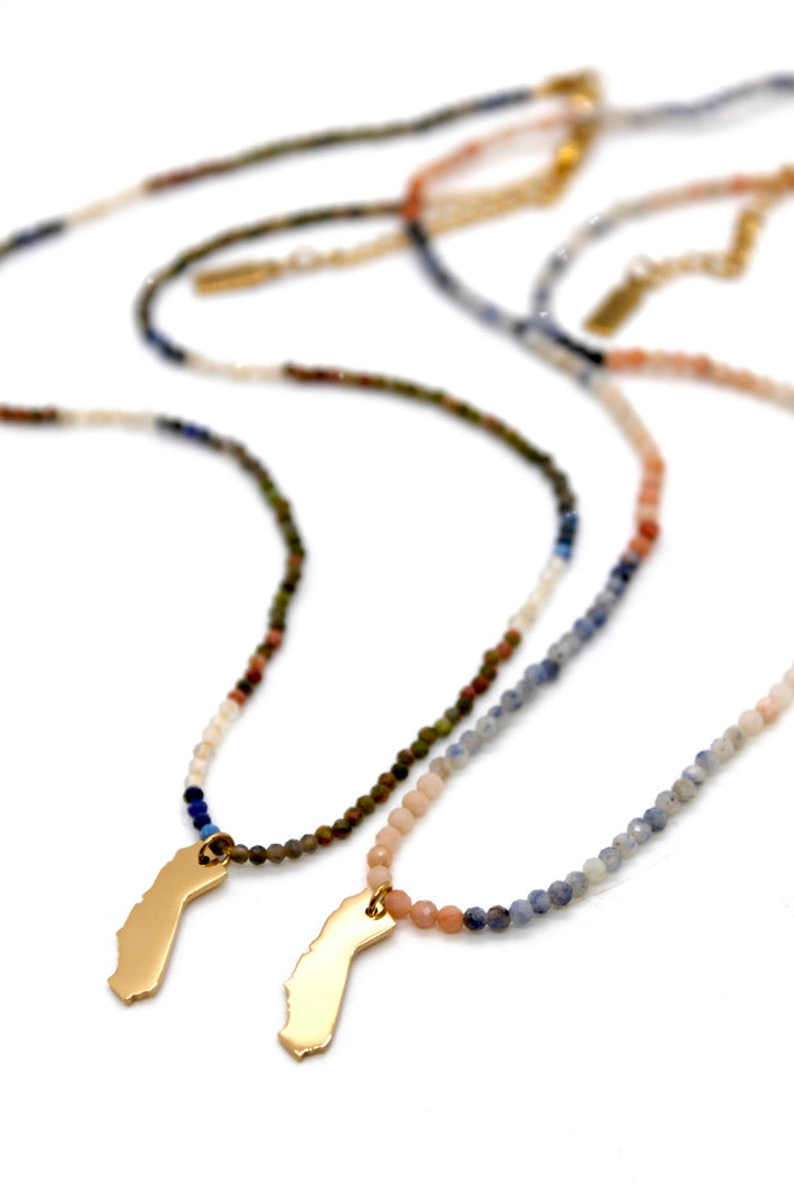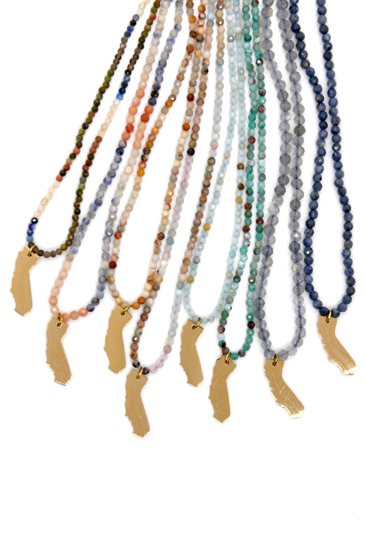 • Load image into Gallery viewer, California State Mini Stone Gold Charm Necklace