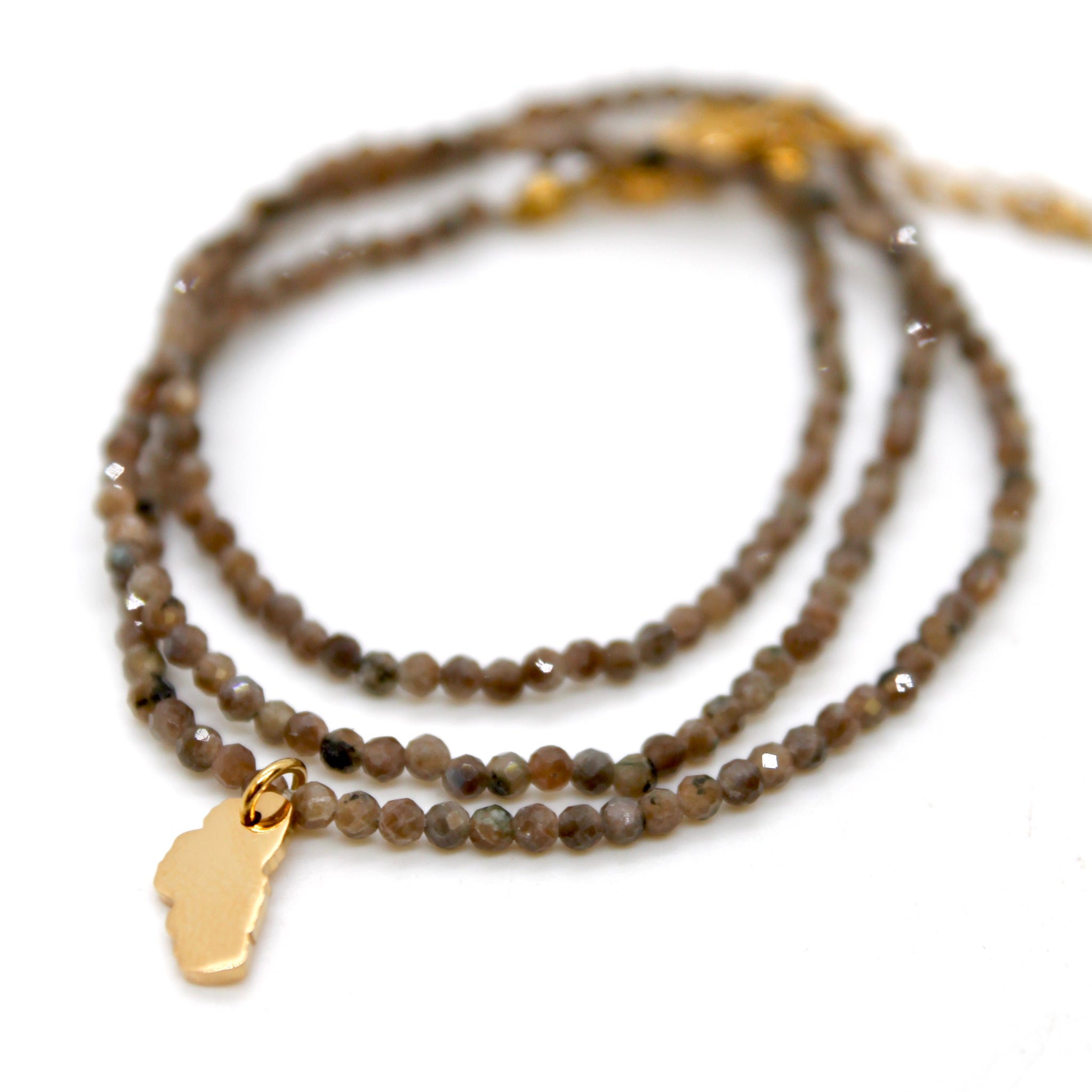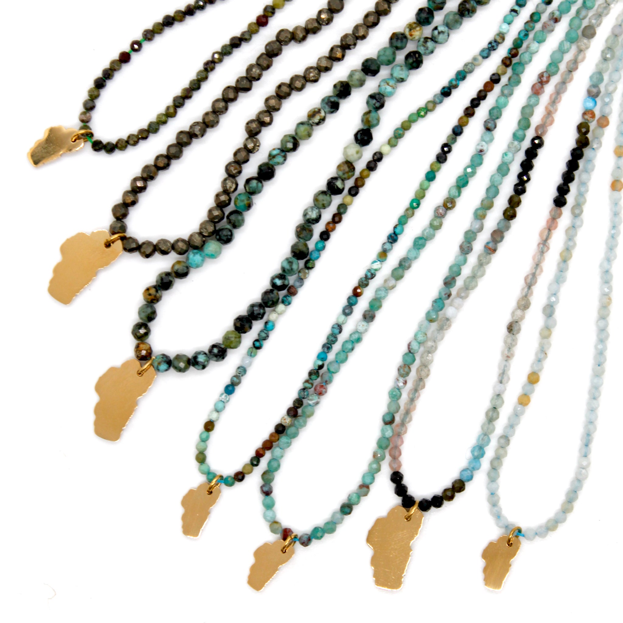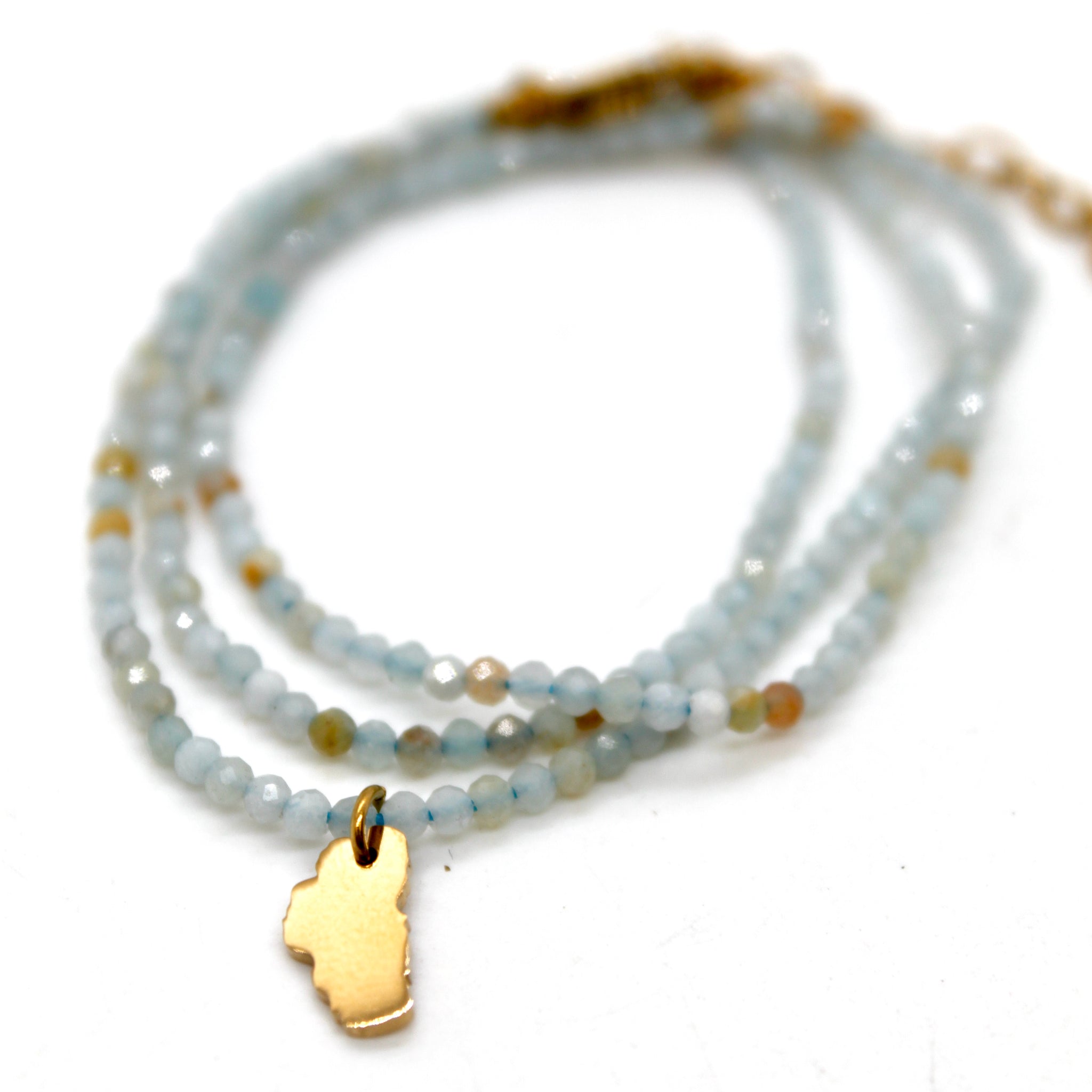 Gold Plated Lake Tahoe Charm on Short Faceted Stone Necklace.