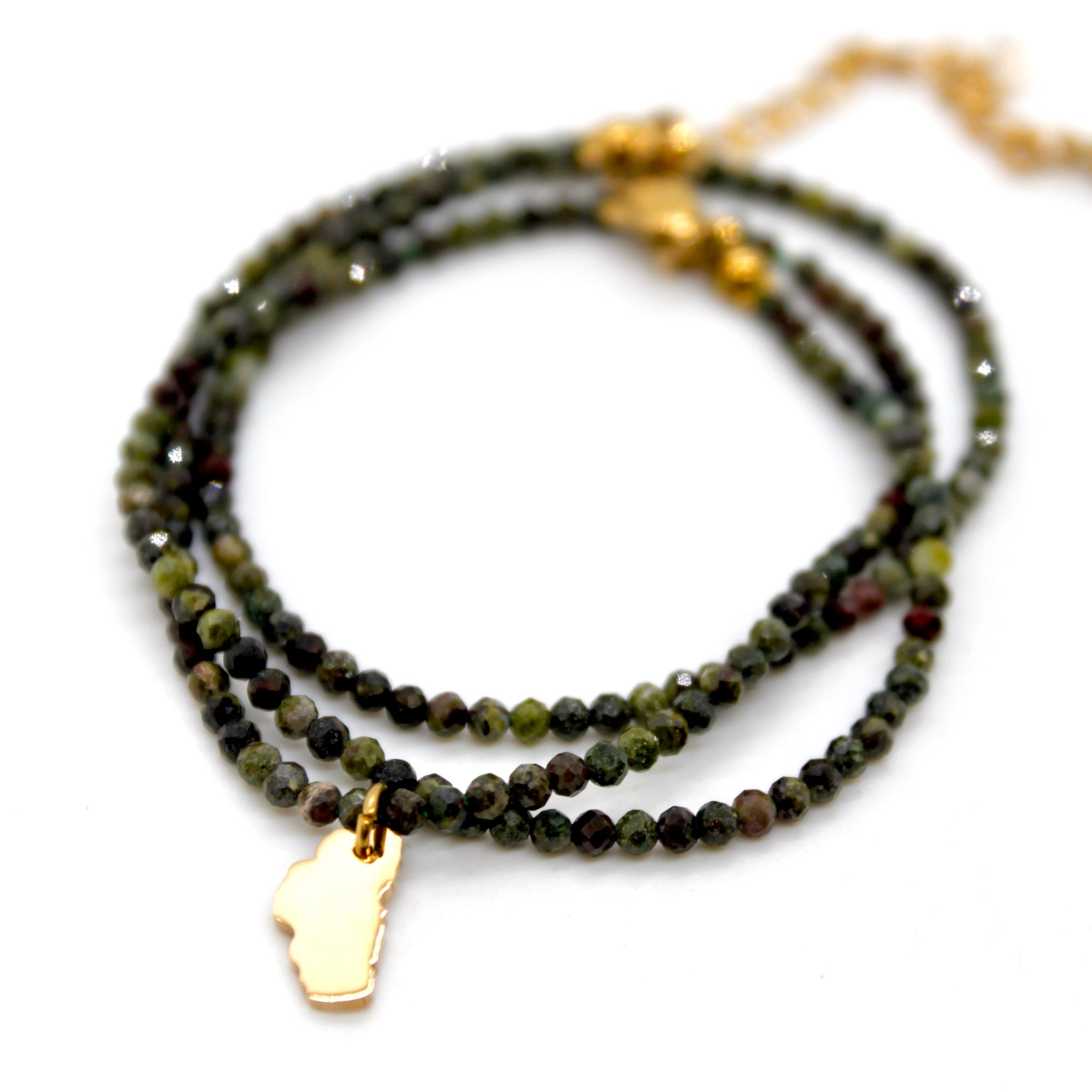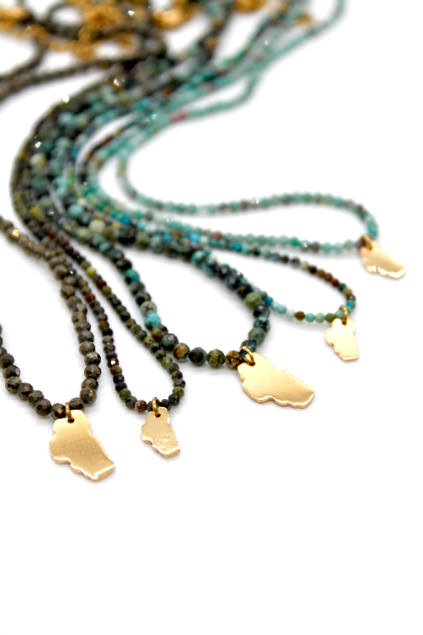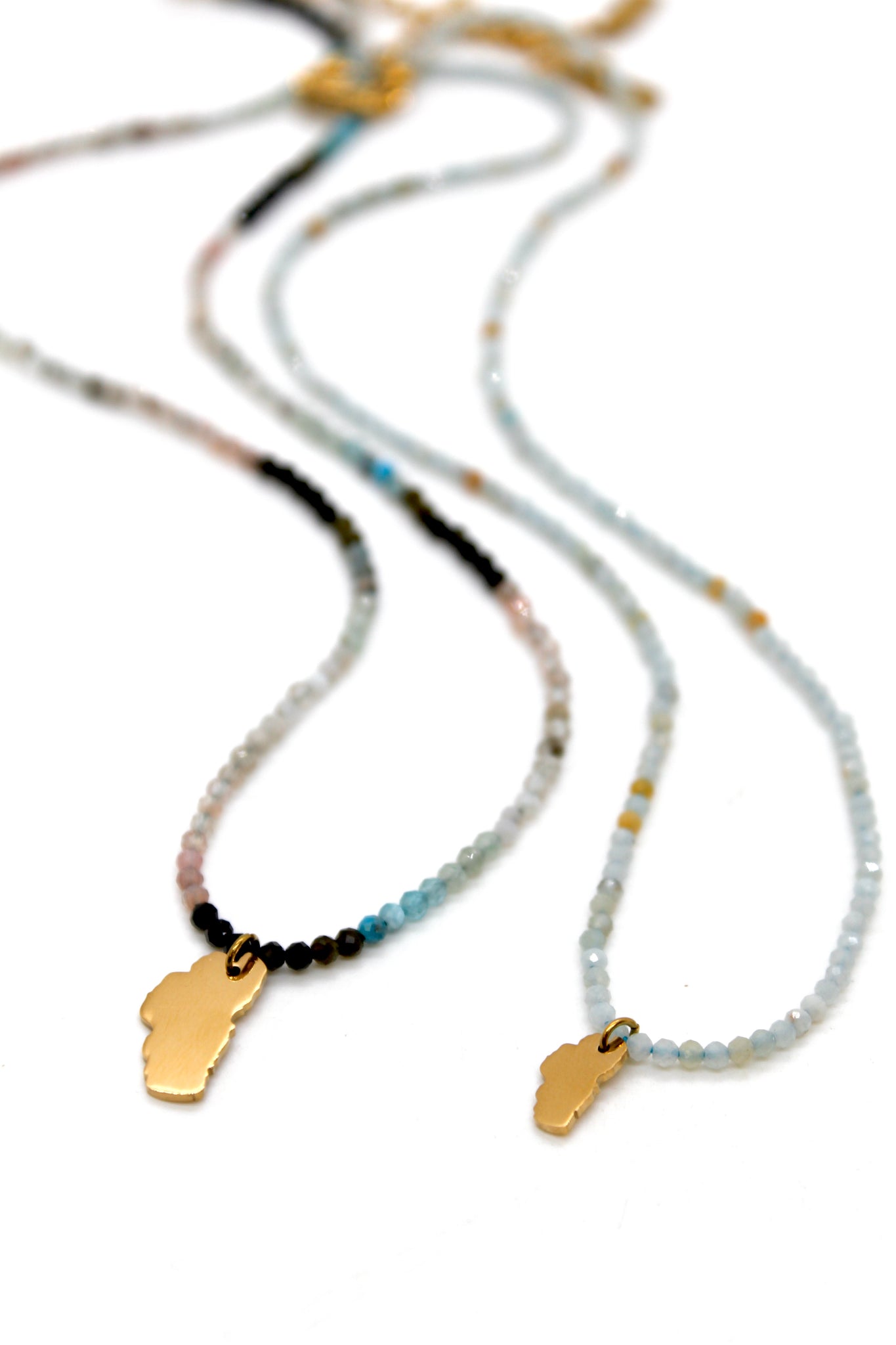 Gold Plated Lake Tahoe Charm on Short Faceted Stone Necklace.