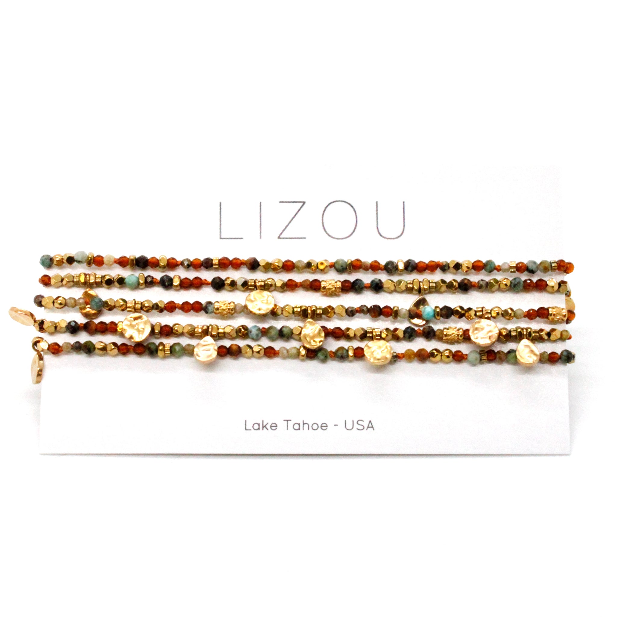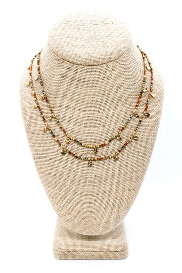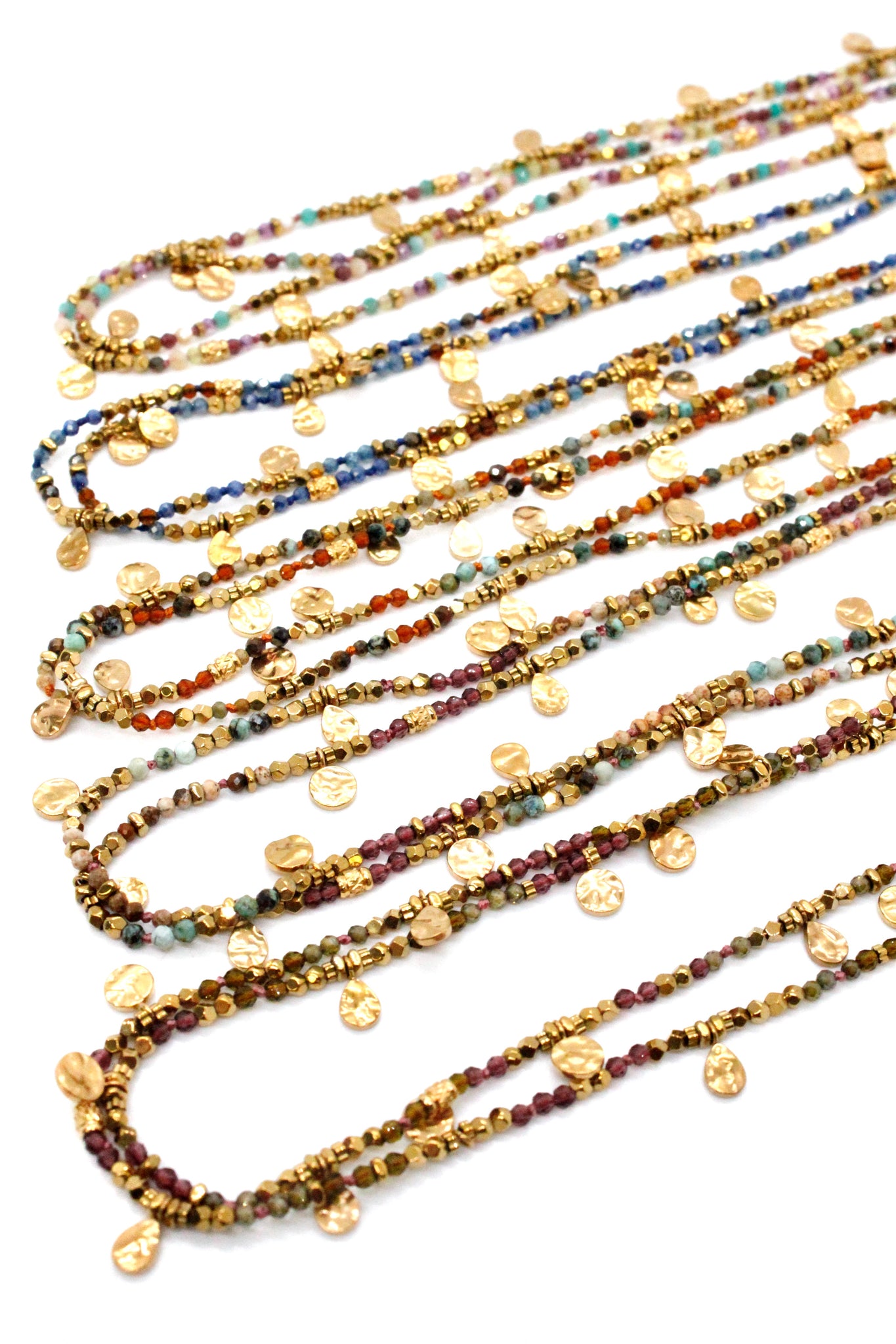 Multi Stone Mix and Mini Gold Coin Wrap Necklace