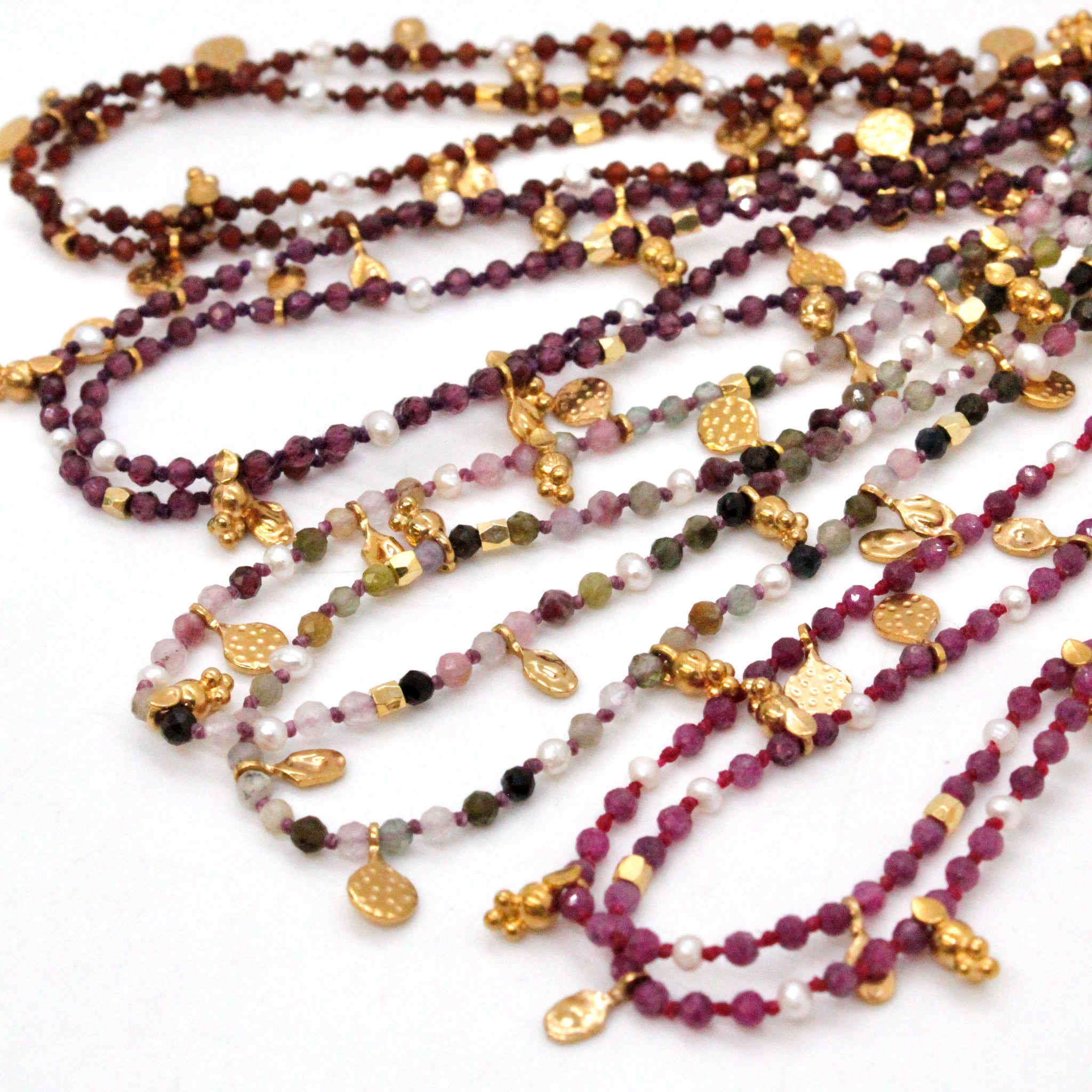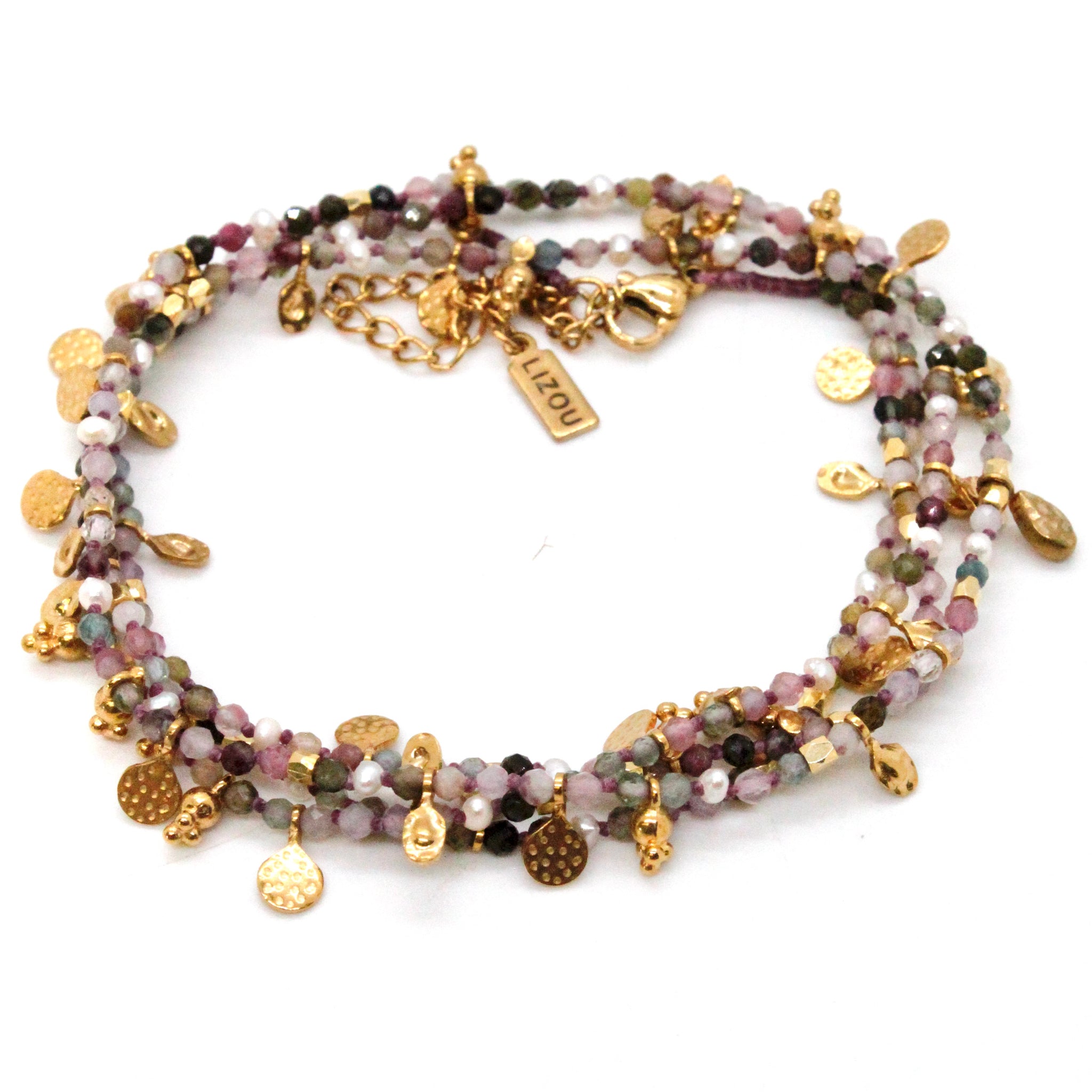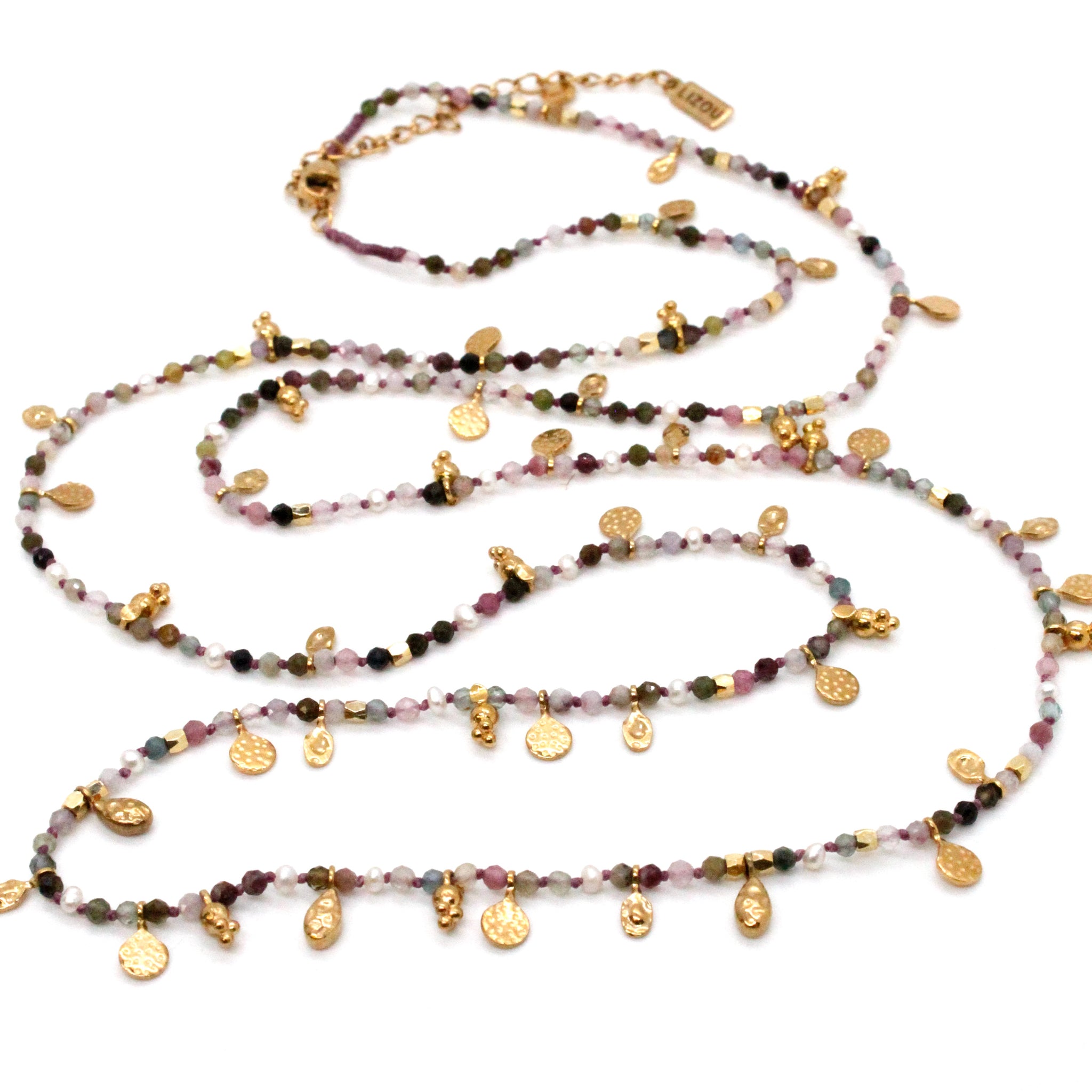 Tourmaline and Freshwater Pearl Gold Mini Coin Wrap Necklace