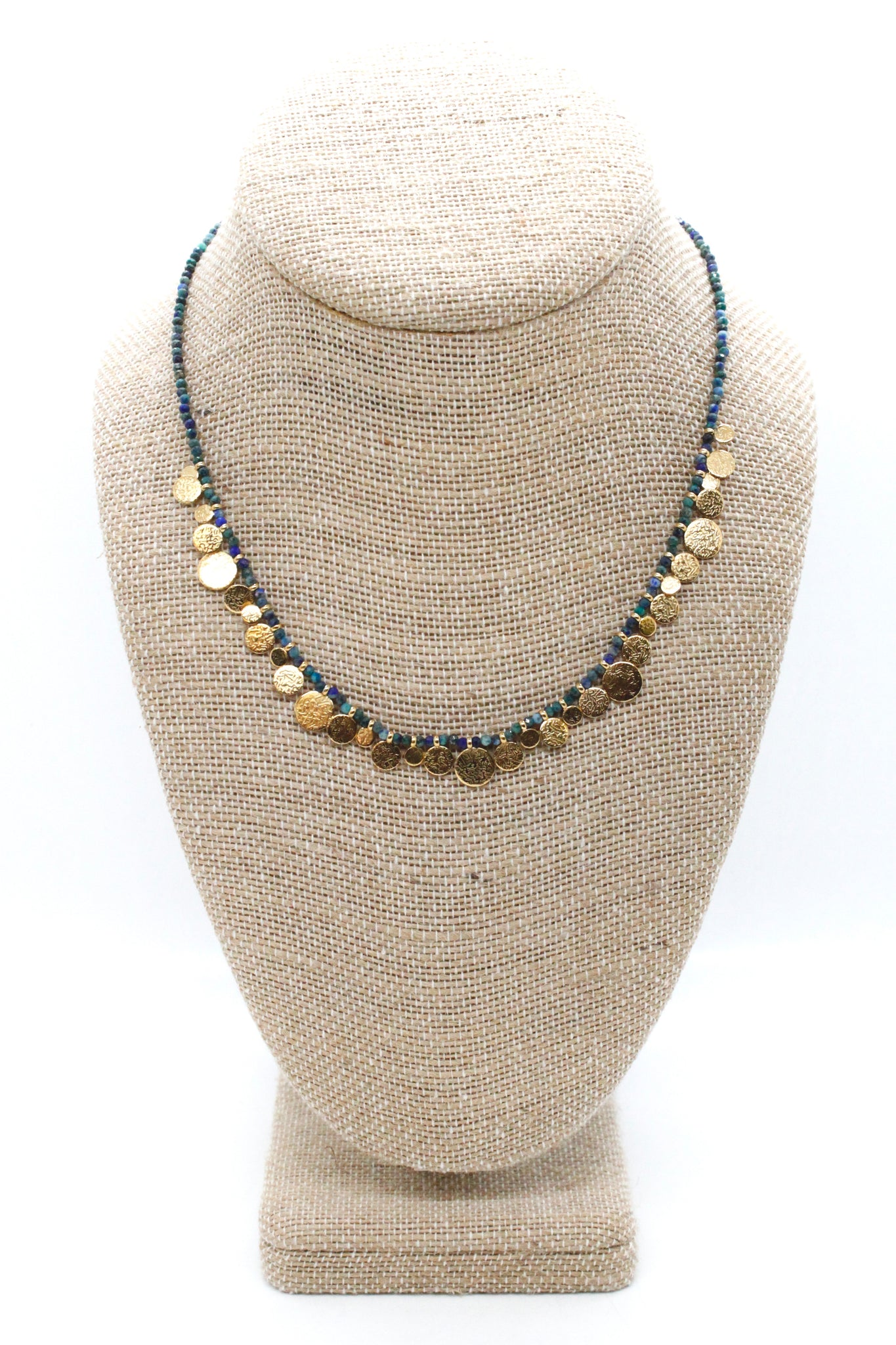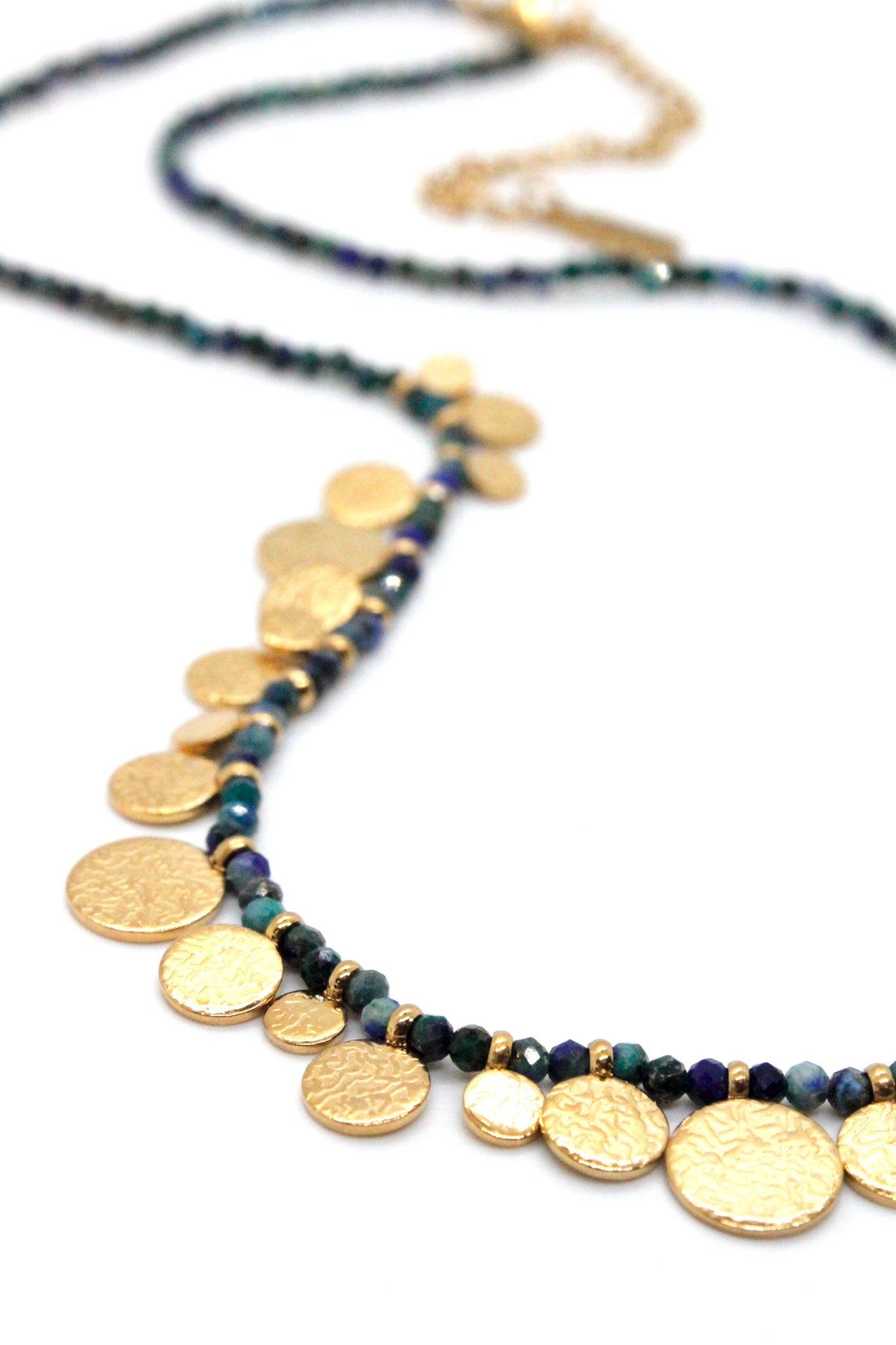 Short Mini Gold Disc Charm Azurite Necklace