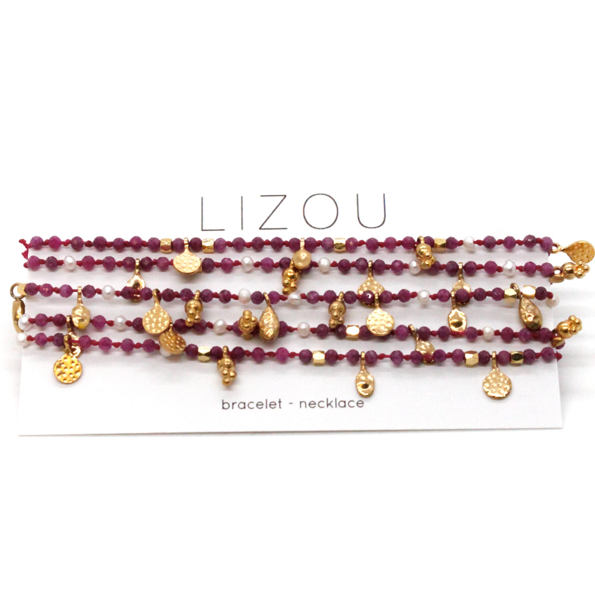 Pink Tourmaline and Freshwater Pearl Gold Mini Coin Wrap Necklace