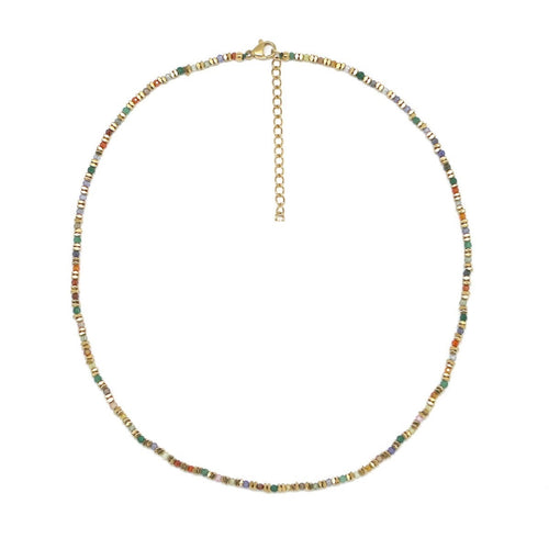 Bright Stone and Gold Beaded Short Necklace -French Flair Collection-