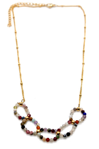 Semi Precious Stone Beaded Link Necklace -French Flair Collection- N2-2248