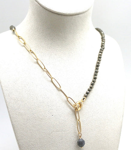 Long Semi Precious Stone Chain with Pyrite Pendant