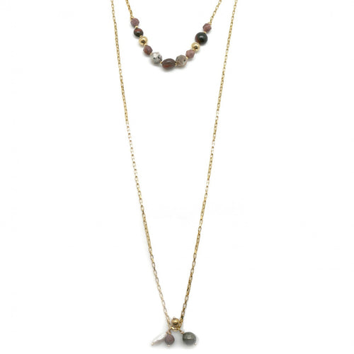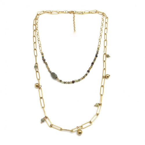 Semi Precious Stone and Chain Double Layer Necklace -French Flair Collection- N2-2048
