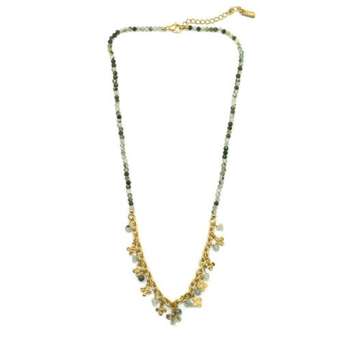 24K Gold Tube Bead Necklace with Semi Precious Stone Drops N2-2364 -French Flair Collection-
