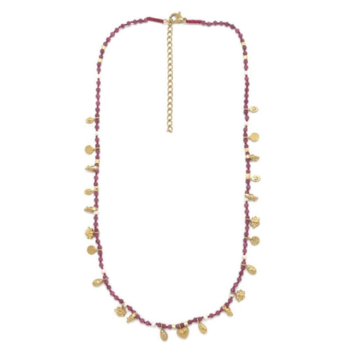 Heart and Lotus Mini Charm Ruby Necklace - N2-2670RY