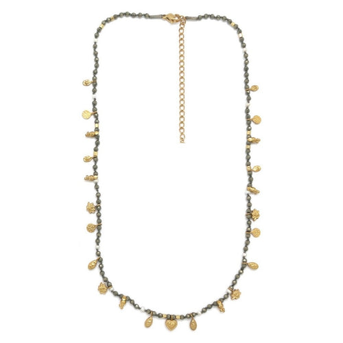 Heart and Lotus Mini Charm Pyrite Necklace - N2-2670P