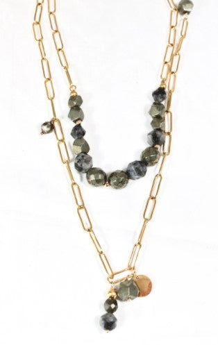 Delicate and Fun Stone and Crystal Layered Stone Necklace -The Classics Collection- N2-641