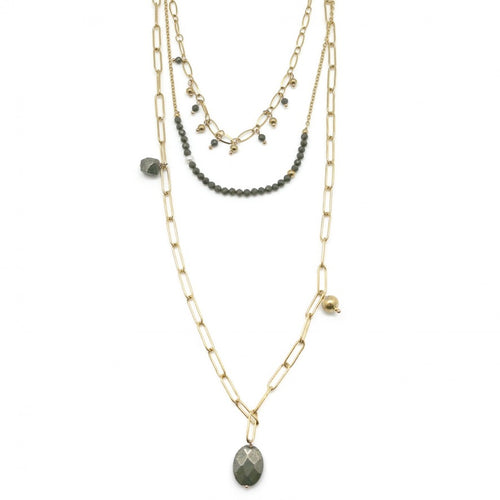 Three Tier Semi Precious Stone 24K Gold Plate Long Layered Necklace -French Flair Collection- N2-2151