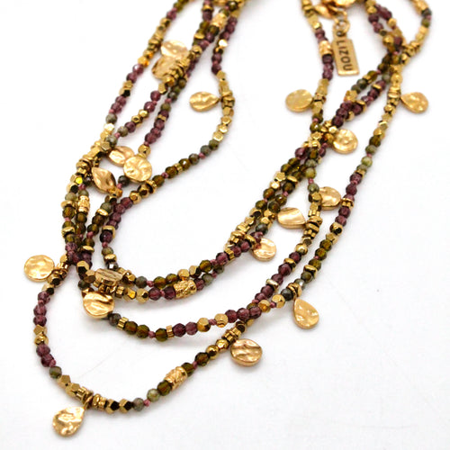 Purple Garnet Gold Mini Coin Wrap Necklace - N2-2616A