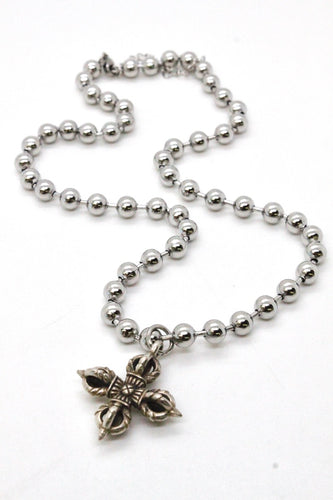 Single Silver Ball Chain Necklace with Lucky Brass Cross N2-S1023 -The Classics Collection-